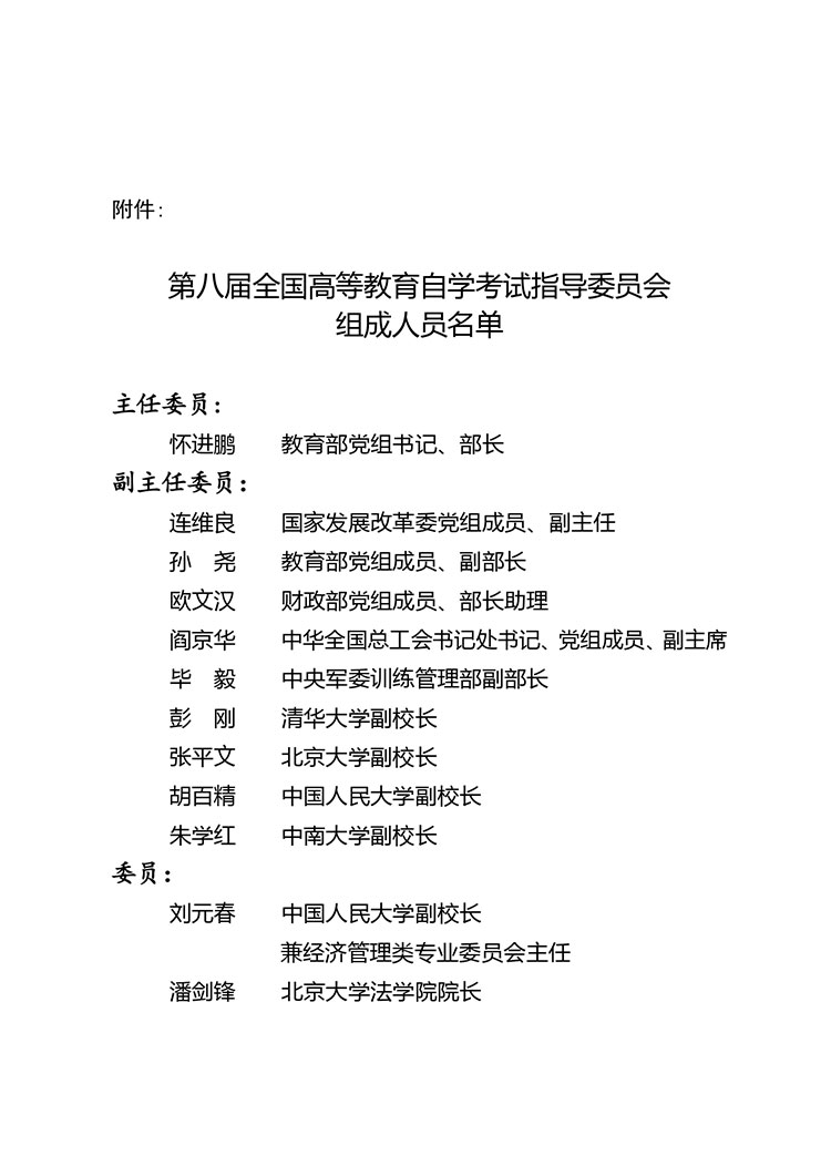 近日,教育部对全国高等教育自学考试指导委员会做换届调整,成立第八届全国高等教育自学考试指导委员会。具体名单如下: