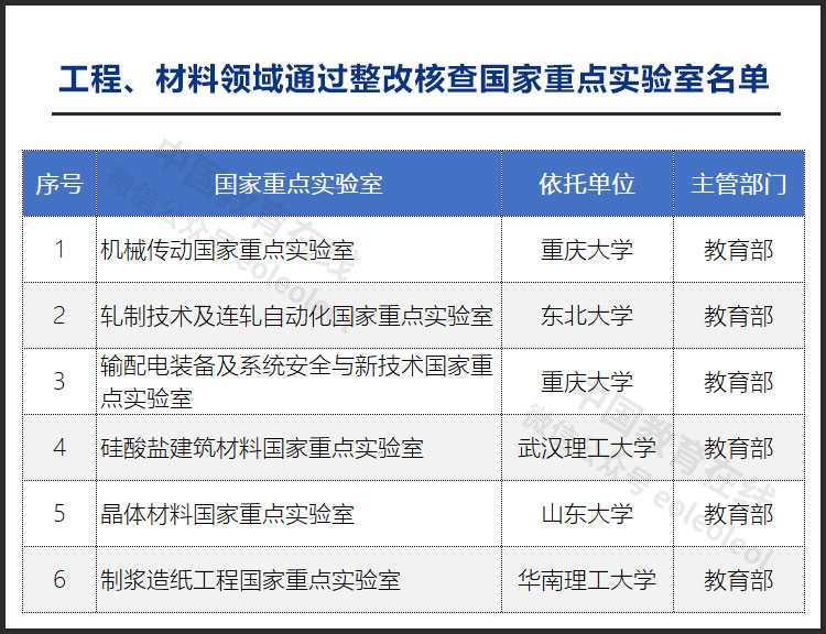 经研究,同意轧制技术及连轧自动化等6个国家重点实验室通过整改核查,按照良好类实验室予以支持。