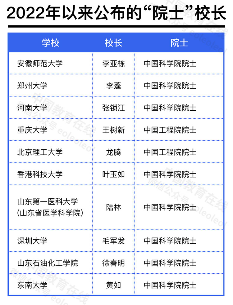 10所高校迎来“院士校长”