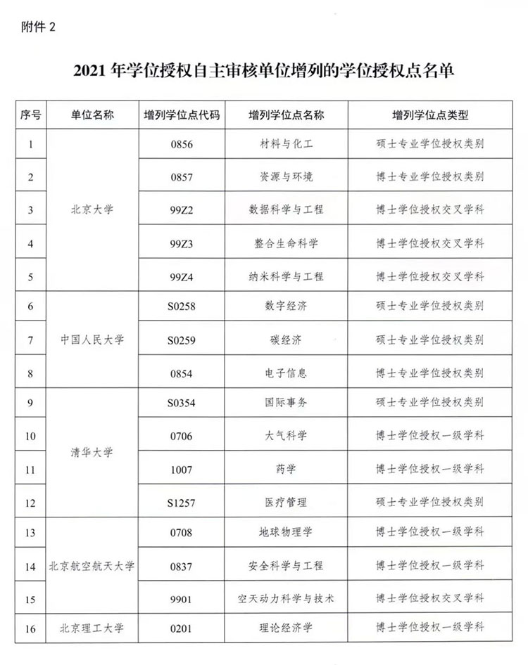 增116个,撤3个!2021自主审核单位学位点名单公布