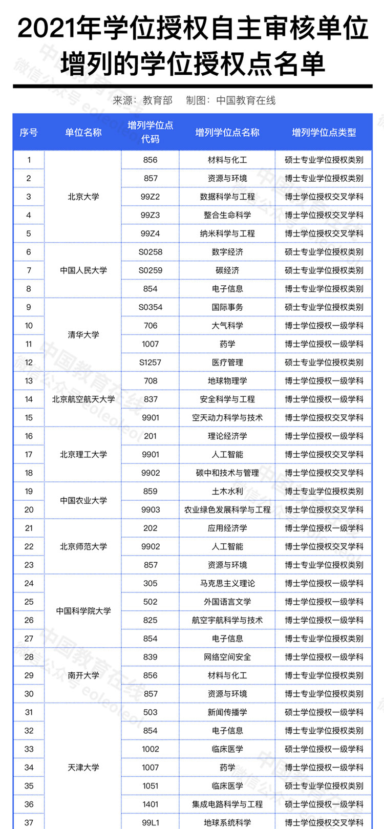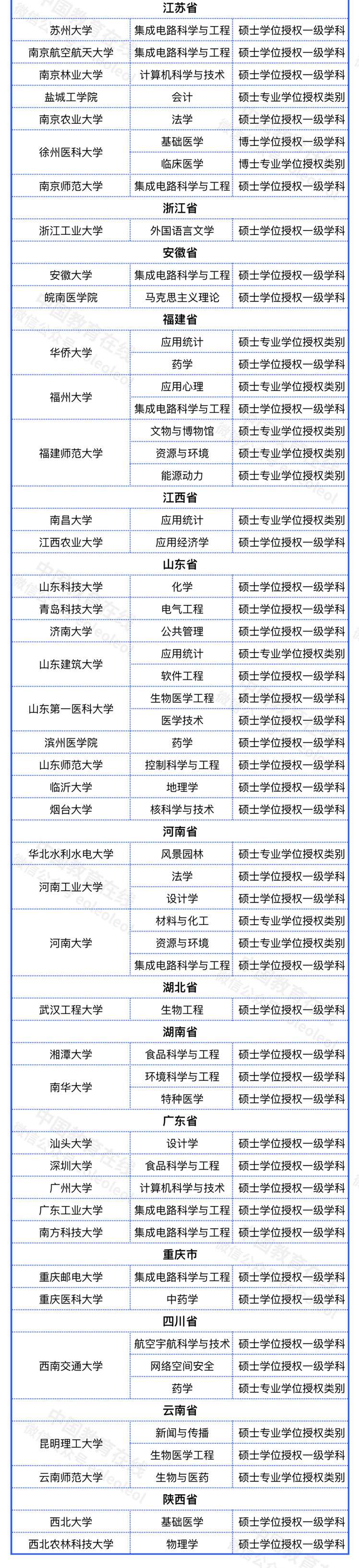 2021年学位授权点撤销、增列名单公布