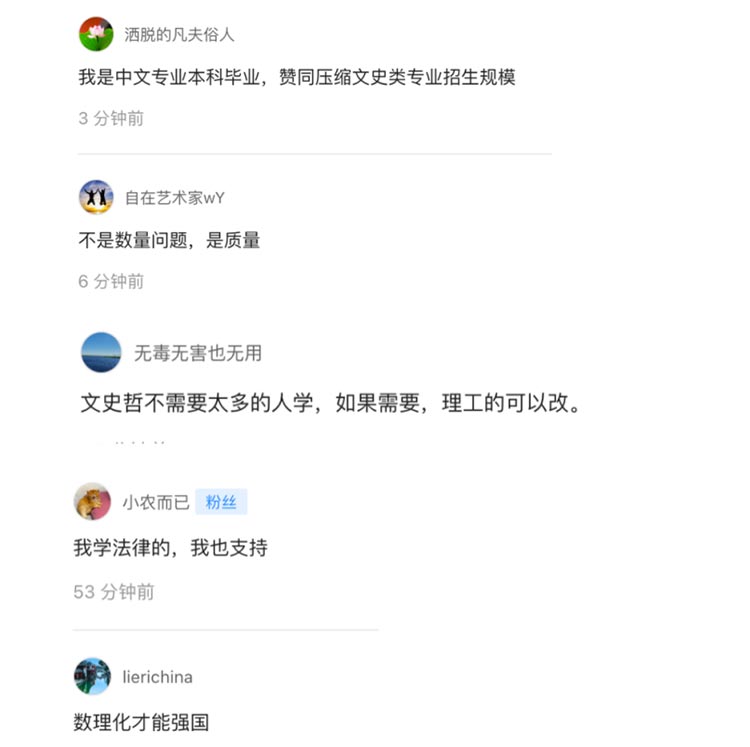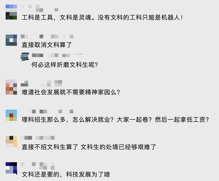 针对这次的“文理之争”,不少文科生却一改往日“一生要强”的态度,不少留言都支持大力发展理工科。