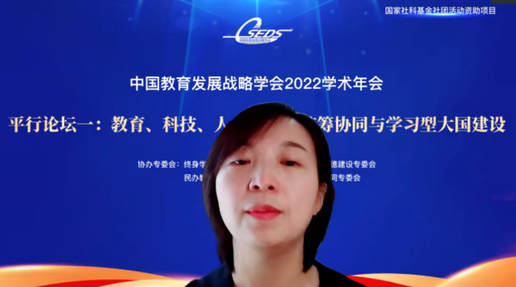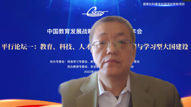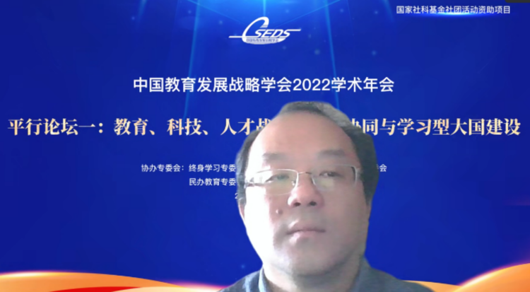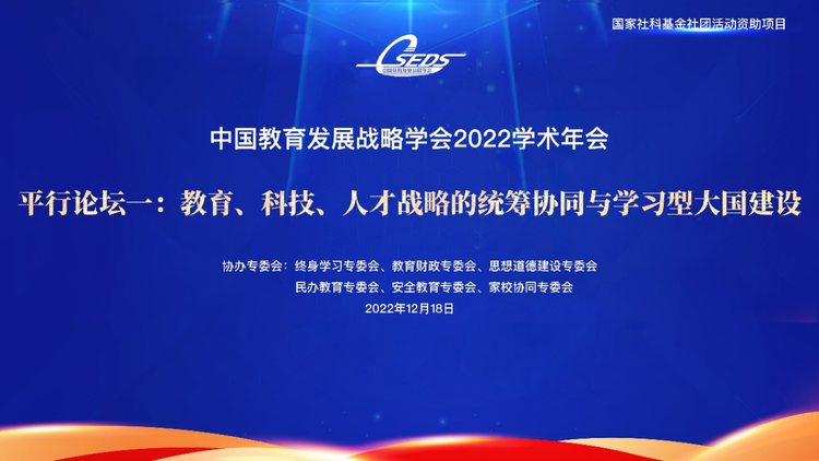 12月18日,由中国教育发展战略学会主办,中国教育发展战略学会终身学习专委会、教育财政专委会、民办教育专委会、思想道德建设专委会、安全教育专委会、家校协同专委会等六家分会共同承办的中国教育发展战略学会2022学术年会暨平行论坛一以北京为主会场,通过与在线直播相结合的形式成功举办。论坛主题为“教育、科技、人才战略的统筹协同与学习型大国建设”,13位专家学者云集线上作精彩主题报告分享,超万人在线参会交流。