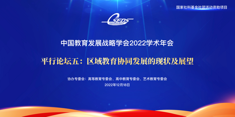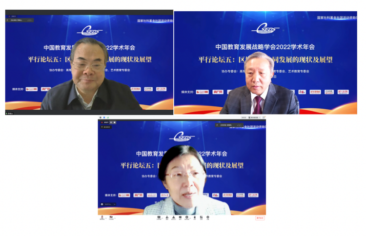为深入学习、贯彻、宣传党的二十大精神,深入贯彻习近平新时代中国特色社会主义思想与习近平总书记关于教育的重要论述,探讨新时代新格局背景下区域教育协同发展要求,2022年12月18日,中国教育发展战略学会2022学术年会主题为“区域教育协同发展的现状及展望”的平行论坛在“云端”隆重举行。本次论坛由中国教育发展战略学会主办,中国教育发展战略学会高等教育专业委员会承办,中国教育发展战略学会高中教育专业委员会、艺术教育专业委员会协办。在疫情防控新形势下,本次会议采取线上报告形式举行,包括来自中国教育发展战略学会、高等院校和科研院所的有关领导、科研工作者在内的近200余人参会。