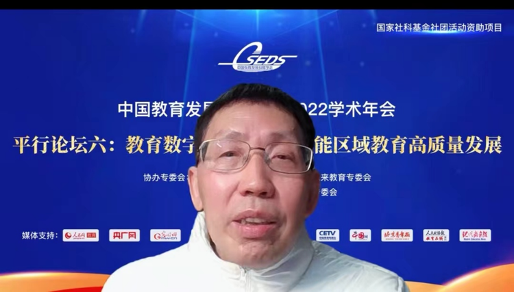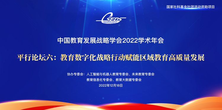 中国教育发展战略学会2022学术年会主题为“教育数字化战略行动赋能区域教育高质量发展”的平行论坛于12月18日上午在“云端”召开,该论坛由中国教育发展战略学会所属的“人工智能与机器人教育”、“未来教育”、“教育信息化”和“教育大数据”四个专业委员会共同协办。