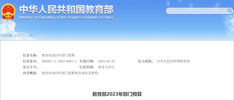 3月28日,教育部官方网站公布了教育部2023年部门预算。预算文件显示,教育部2023年部门预算中一般公共预算当年财政拨款为 13,547,129.91 万元,比 2022年执行数增加 247,272.00 万元。