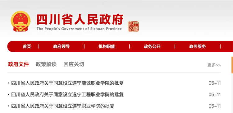 近日,四川省人民政府发布批复同意设立遂宁职业学院、遂宁工程职业学院、遂宁能源职业学院三所职业学院。
