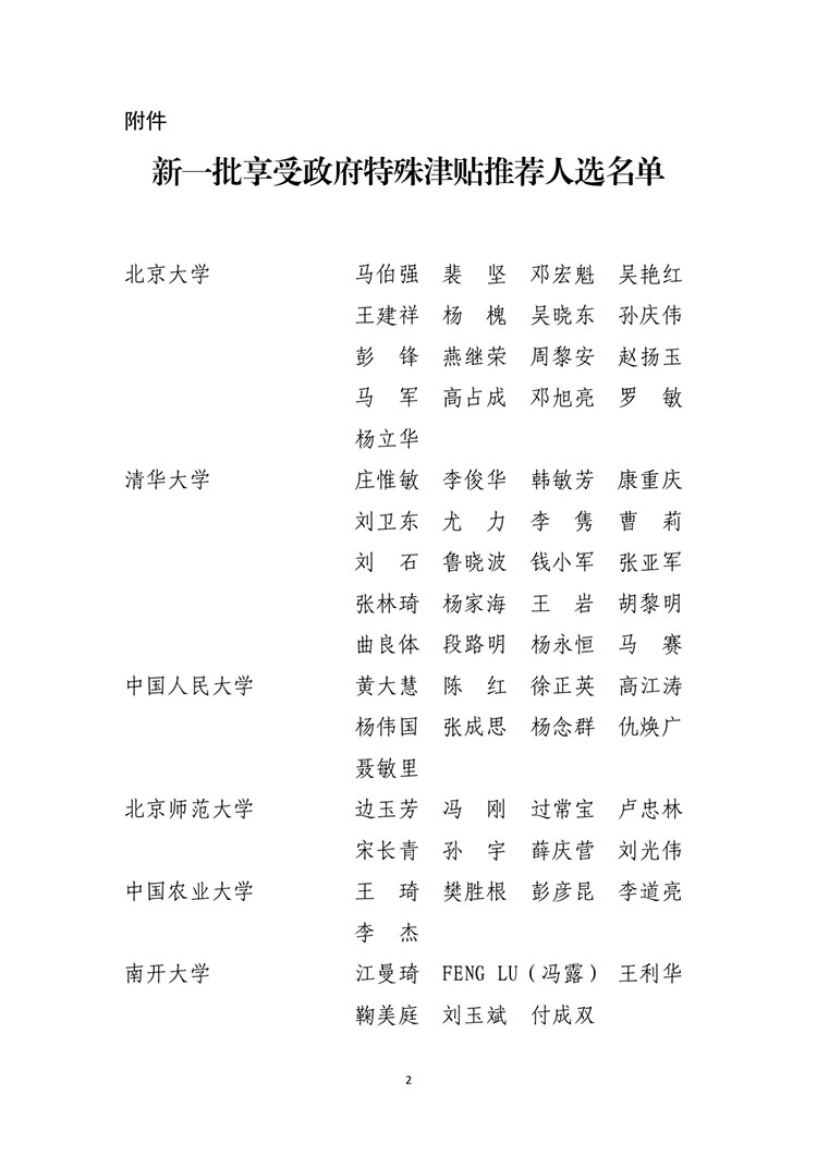 教育部公示新一批享受政府特殊津贴推荐人选名单