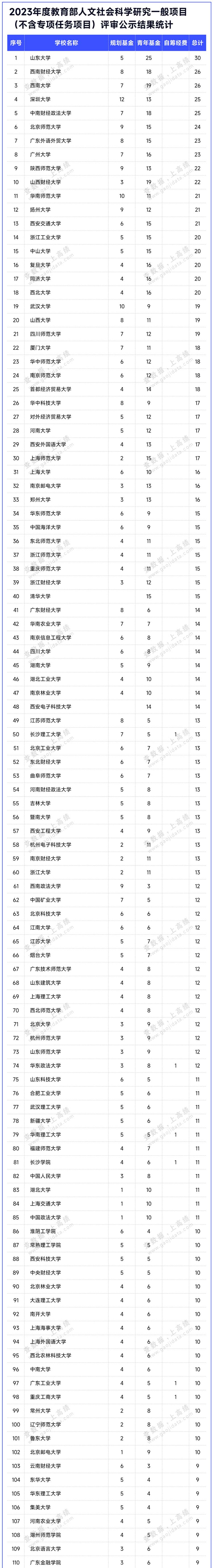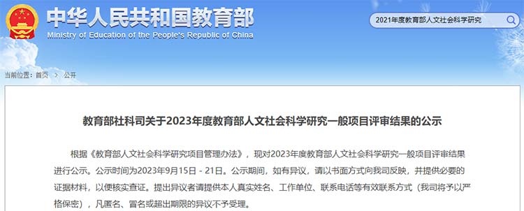 9月15日,教育部社科司公示了2023年度教育部人文社会科学研究一般项目评审结果。