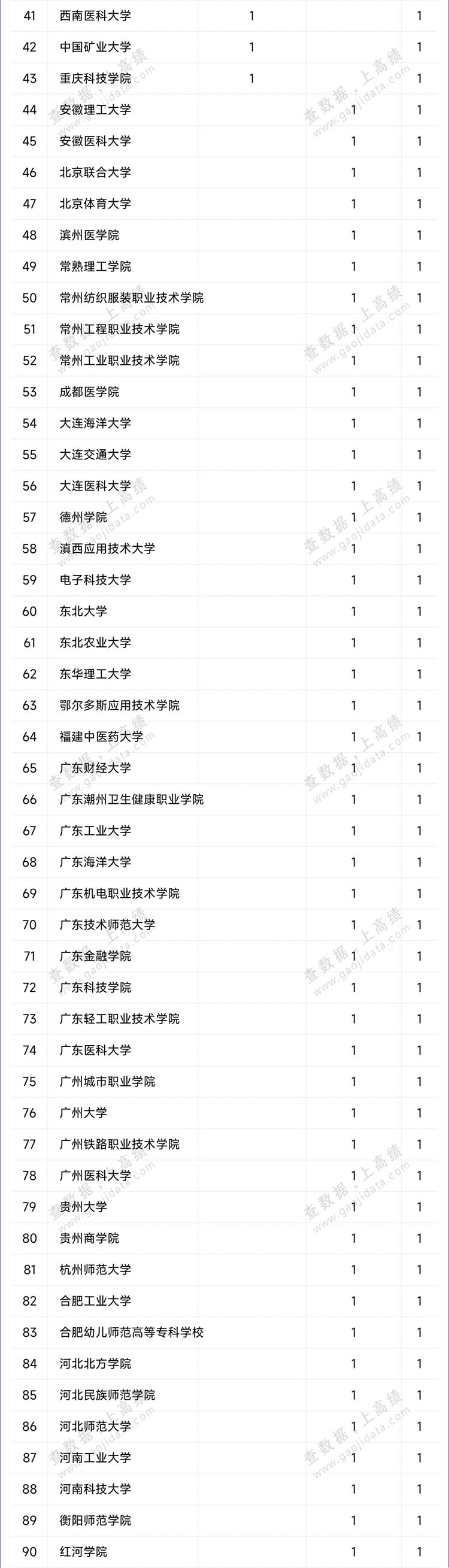 在规划基金、青年基金、自筹经费项目,西部和边疆地区项目,新疆项目,西藏项目4项项目评审公示结果中,山东大学共30项,为入选项目最多的高校;其次是西南财经大学和西南大学,入选26项。入选20个及20个以上项目的高校还有深圳大学、中南财经政法大学、北京师范大学、广东外语外贸大学、广州大学、陕西师范大学、山西财经大学、华南师范大学、扬州大学、西安交通大学、浙江工业大学、中山大学、复旦大学、同济大学和西北大学。