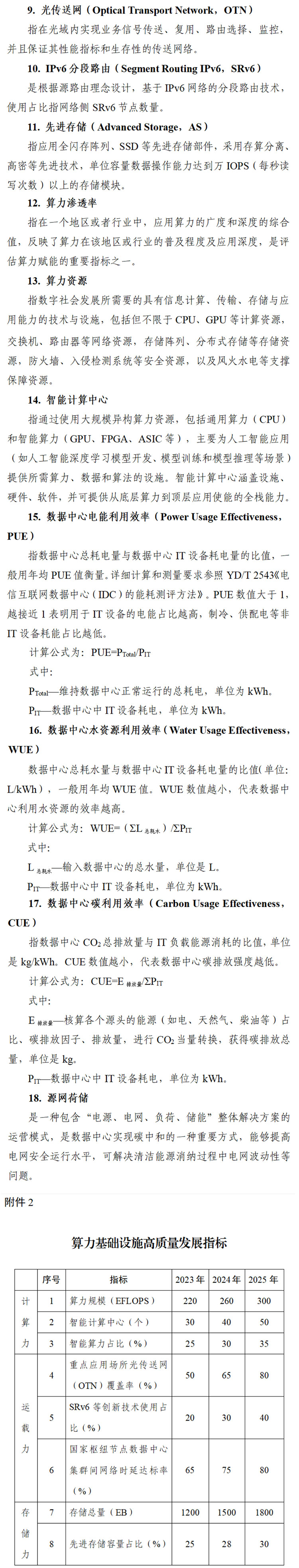 到2025年,计算力方面,算力规模超过300 eflops,智能算力占比达到35%,东西部算力平衡协调发展。