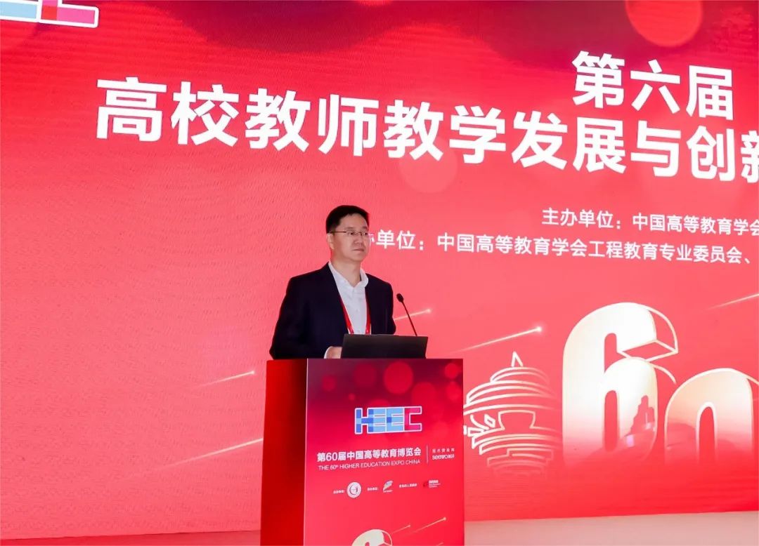 姜恩来在致辞中指出,党的二十大赋予教育新的战略地位和历史使命,并对建设高素质教师队伍、全面提高人才自主培养质量提出了新要求。围绕高校教师教学发展与创新人才培养这个重要命题,他提出三点倡议:一要大力弘扬“教育家精神”,夯实立德树人之基。聚焦立德树人根本任务,把锤炼教师理想信念放在首要位置,把师德师风作为评价第一标准,推动广大教师更好担负起学生健康成长指导者和引路人的政治责任。二要大力推动教学改革,增强人才培养之力。深入推进教育理念、培养模式、课程教材、教学方式、考试评价和管理体制机制等领域综合改革,加快构建高水平专业化的教师教学发展体系。三要大力完善评价机制,深化教育改革之治。科学做好教师队伍评价设计,建立“研发—评审—监管—评估—反馈—更新”工作机制,为促进教师发展、推动创新人才培养、提升教育治理能力注入更强活力。