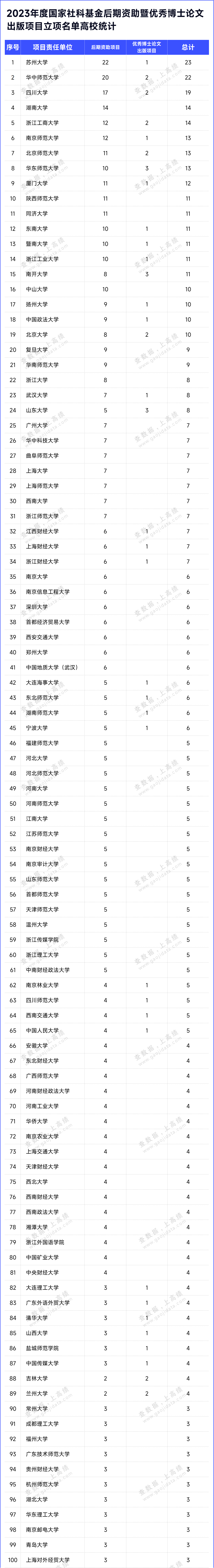 其中苏州大学的总拟立项数量最多,为23项;其次是华中师范大学,拟立项数为22项;四川大学位列第三,拟立项数为19项。