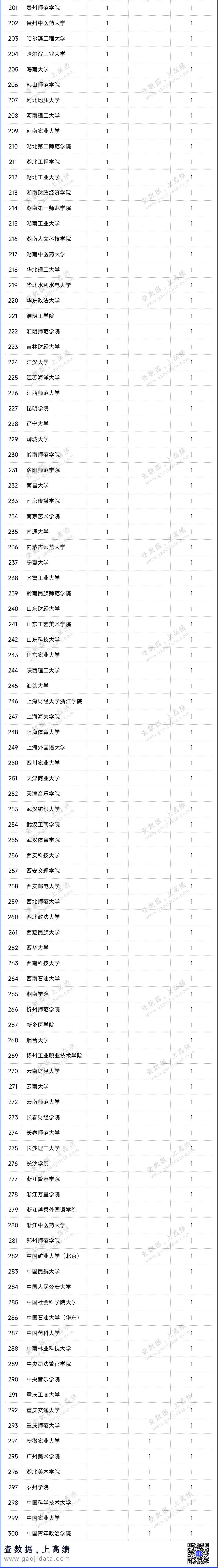 各高校拟立项结果统计如下: