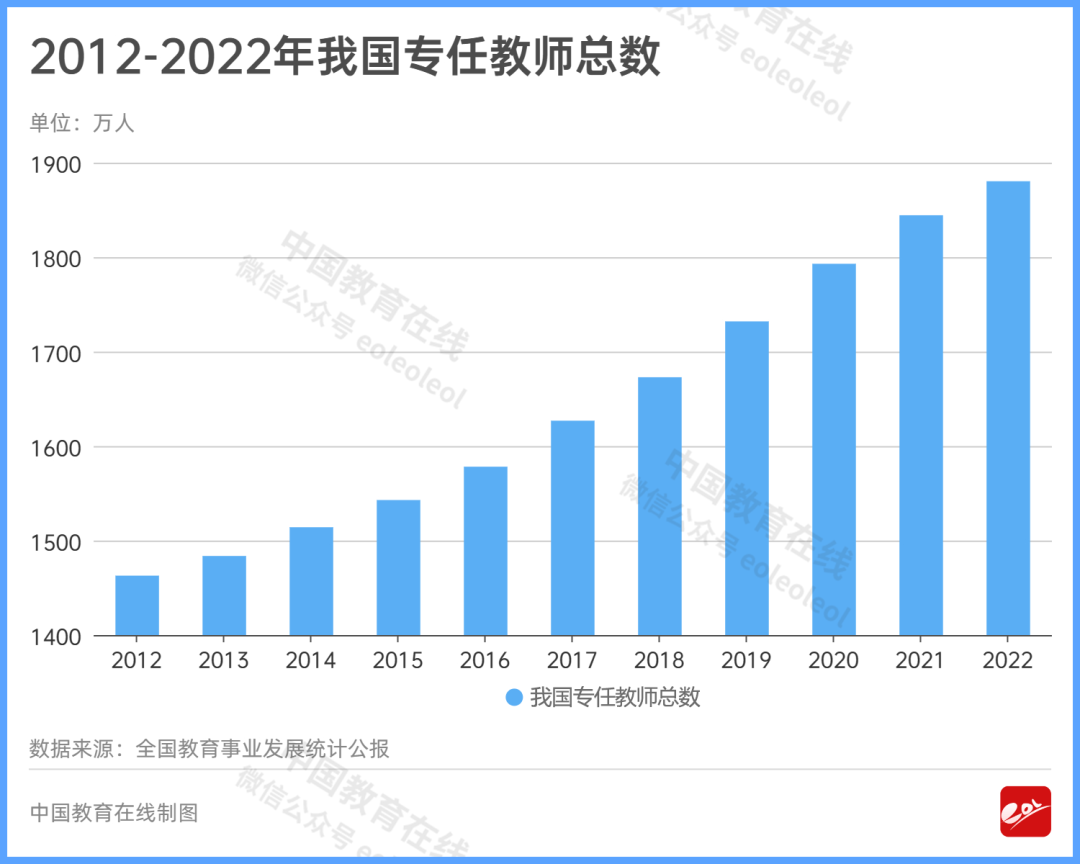 据《2022年全国教育事业发展统计公报》显示,2022年,全国共有各级各类专任教师1880.36万人。这支规模宏大的高素质专业化教师队伍,成为了支撑世界上最大规模教育体系的“大国良师”。第39个教师节,习近平总书记致信全国优秀教师代表,强调要“大力弘扬教育家精神”,“为强国建设、民族复兴伟业作出新的更大贡献”,并首次提出、深刻阐释了中国特有的教育家精神的时代内涵。