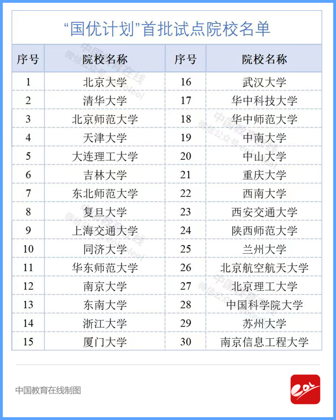 【遴选30所“双一流”大学为中小学培养优秀教师】