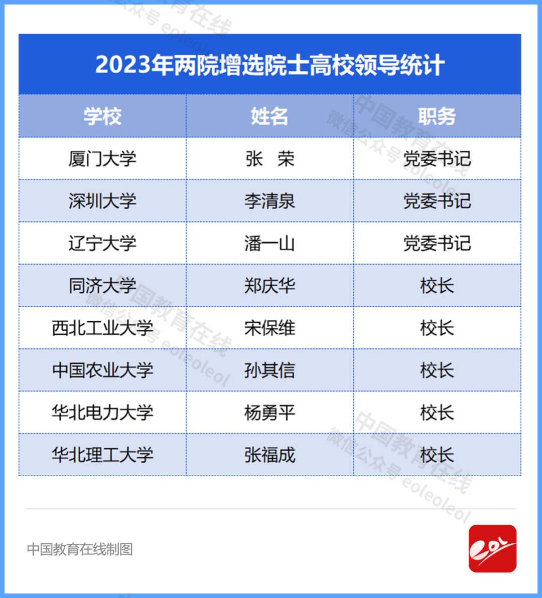 11月22日,中国科学院、中国工程院分别公布2023年院士增选名单。经过选举,共产生了59名中国科学院院士,74位中国工程院院士。据统计,其中,有8位高校领导成功当选。