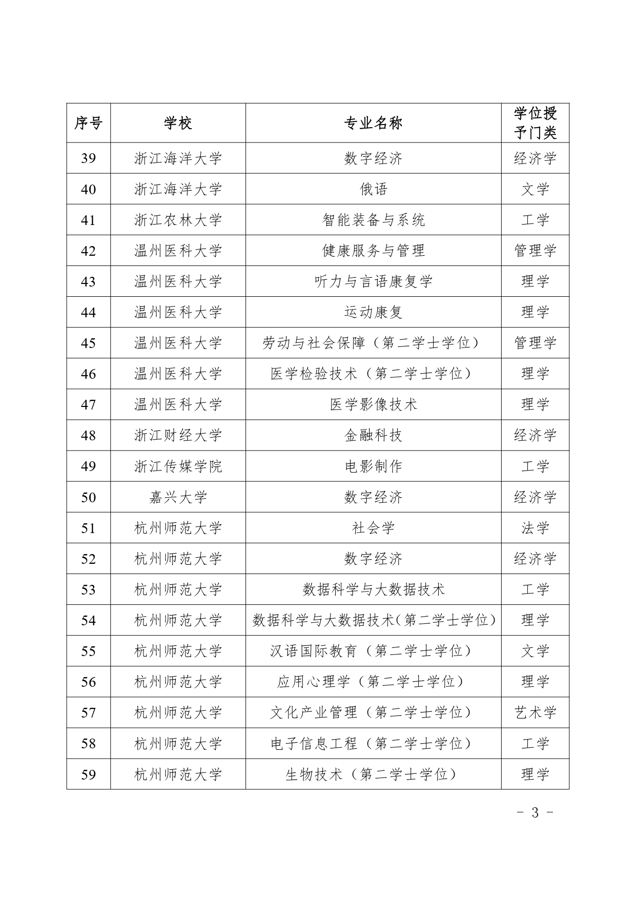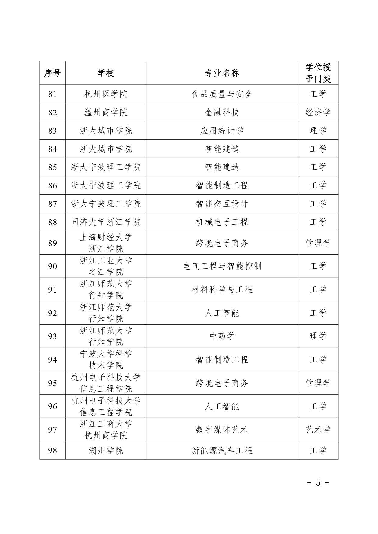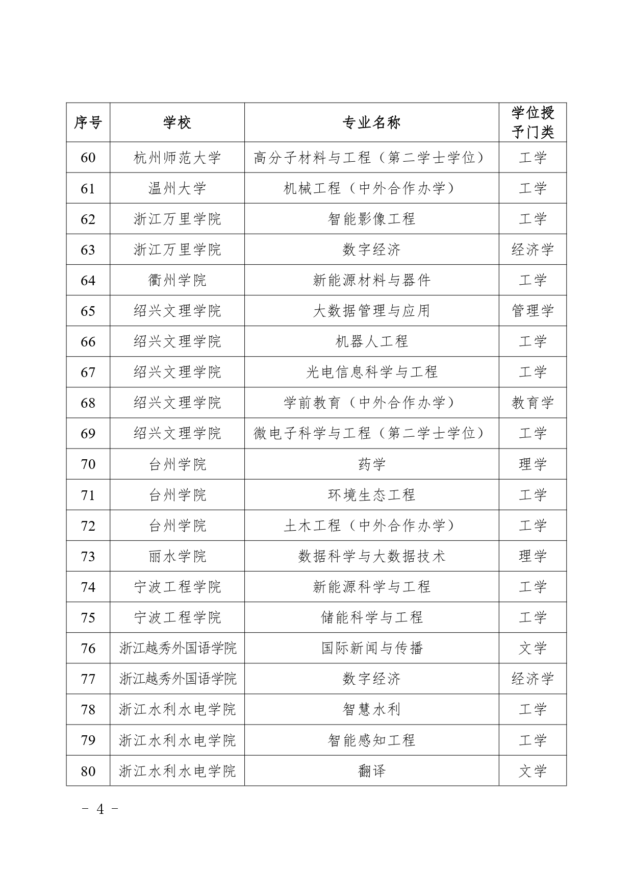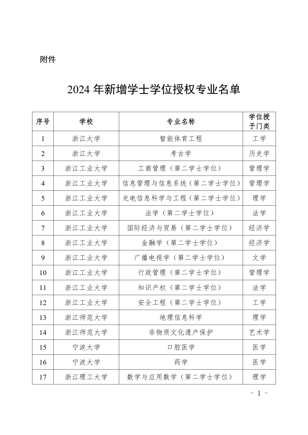 4月3日,浙江省学位委员会办公室公示2024年新增学士学位授权专业评审结果。根据《浙江省学位委员会关于做好学士学位授权审核工作的通知》(浙学位〔2022〕4号)要求,经学校申报、专家评审、省学位委员会审议,新增浙江大学智能体育工程等115个专业(含第二学士学位专业32个)为学士学位授权专业,现予公示。