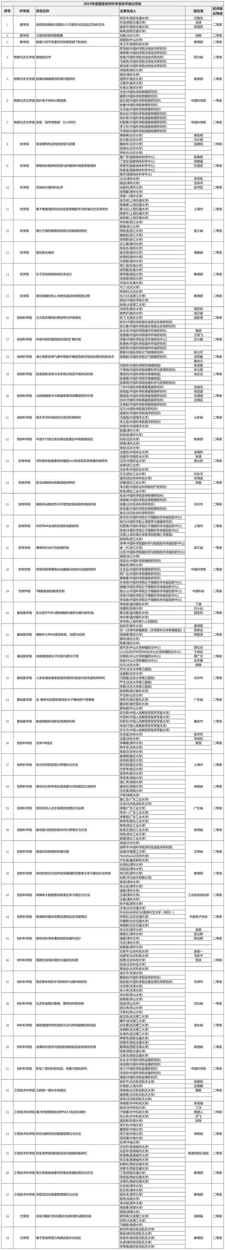 国家科学技术进步奖项目中,清华大学、上海交通大学、四川大学、吉林农业大学、西安电子科技大学和浙江工业大学各有1项初评建议等级为一等奖。