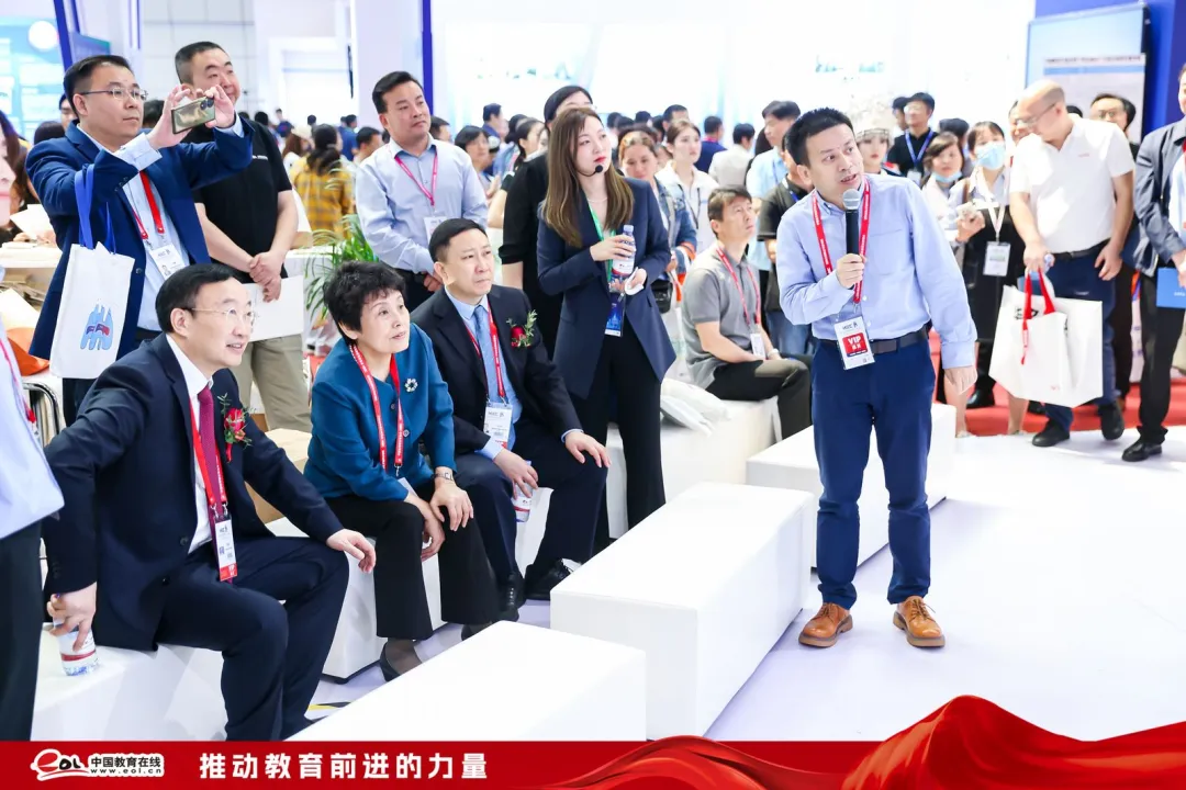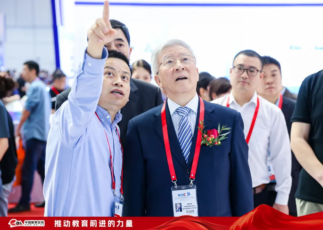 (中国高等教育学会副会长、教育部原党组成员、副部长林蕙青,中国产学研合作促进会常务副会长、教育部科学技术与信息化司原司长雷朝滋莅临中国教育在线展厅指导)