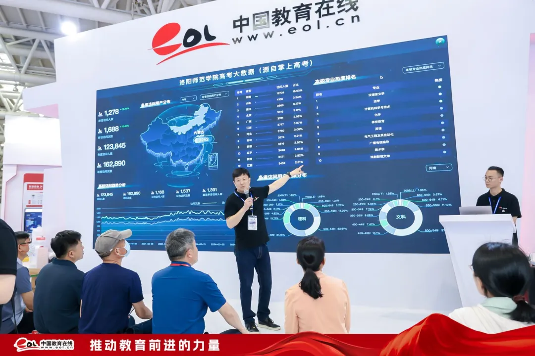 科技创新的引领,一直以来都是推动现代教育进步的强大动力、影响高等教育发展的关键变量。本次高博会,中国教育在线展厅全景展示了面向招生、就业、宣传、思政、评审、人才、专业建设、国际交流等八大教育场景的最新技术成果、创新技术以及智慧教育服务。