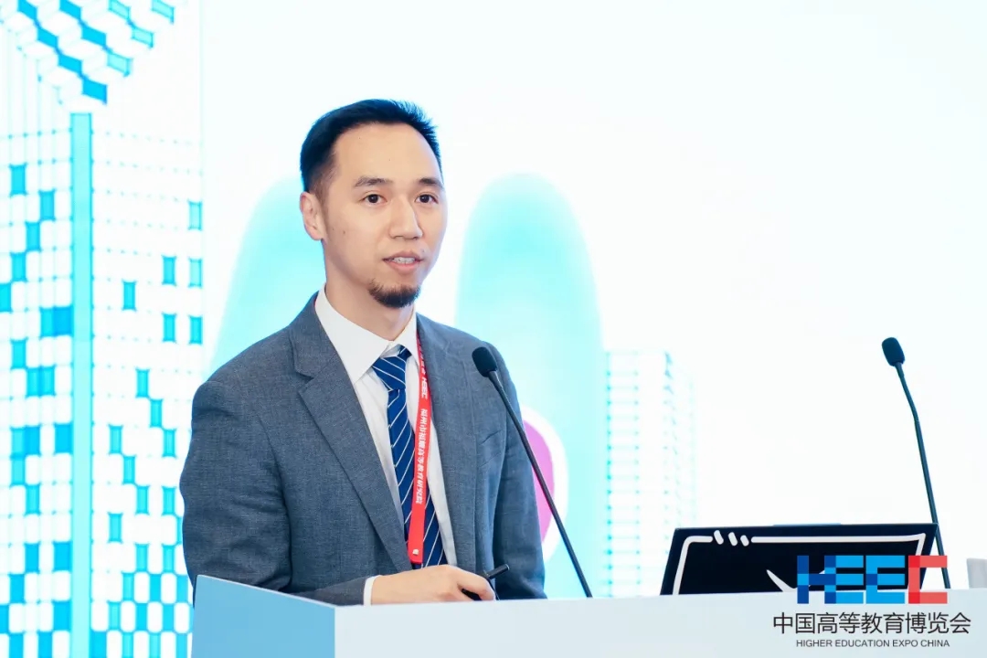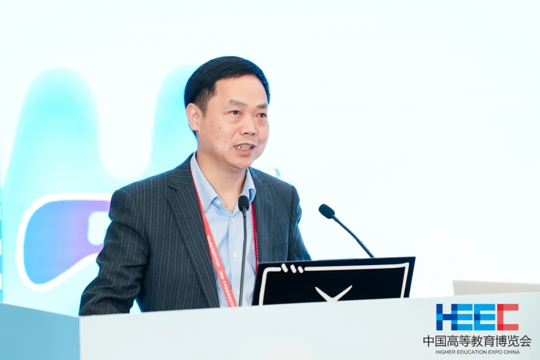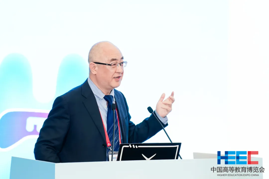 杨宗凯的主旨报告以“数智赋能 构建更加开放的人才培养体系”为题。他分析了高等教育创新面临的新形势和新任务,认为“数智赋能”是未来教育发展的新赛道与突破口,智能时代需要建立更加开放、共享、个性化和能力为重的教育。结合武汉理工大学在创新育人方式、变革办学模式、发挥引领示范等方面的实践与探索,他指出,要主动适应人才培养新要求,将教育数字化作为学校高质量发展的重要引擎,建立更加开放的教育人才培养体系,通过信息技术与教育的深度融合构建数字时代、智能时代高等教育新范式。
