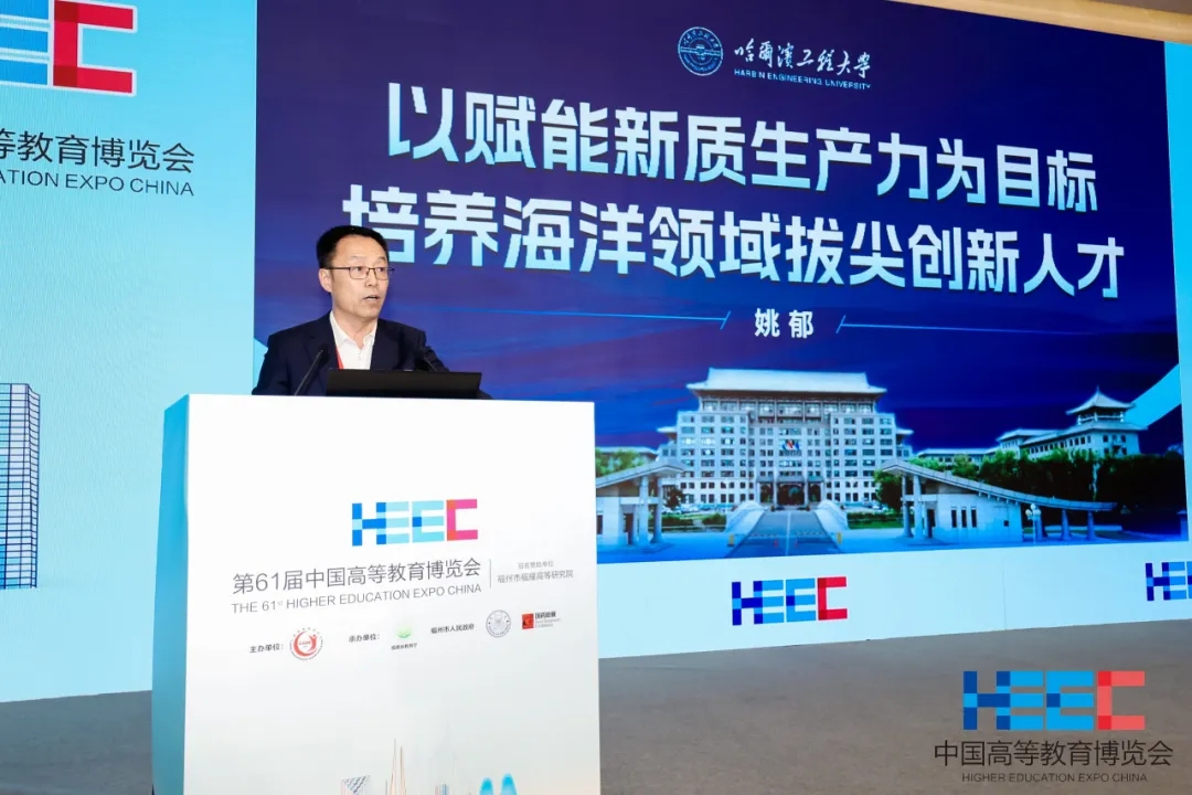 姚郁在“以赋能新质生产力为目标 培养海洋领域拔尖创新人才”为题的主旨报告中,分享了对发展海洋新质生产力的思考以及哈尔滨工程大学以赋能新质生产力为目标、以新工科建设为牵引培养海洋领域拔尖创新人才的创新实践举措。一是学校对接全球顶尖船海名校,建设中英海洋工程联合学院,引进国际先进办学经验;二是面向海洋强国战略需求,建设未来技术学院,深化改革,创新升级自主人才培养模式;三是服务东北振兴战略,成立龙江工程师学院,推进“沉浸式”入企,为学生掌握、解决新质生产真问题提供良好环境;四是聚焦新质战斗力形成需求,强化国家安全教育;五是以修订新版培养方案为契机,辐射推广新工科改革成果,推动全校各专业学院加速实现全要素转型升级;六是成立书院和大本科生院,推进服务管理模式创新,为拔尖创新人才培养提供体制机制保障;七是构建“书院 学院”人才培养新模式,打造行业特色型大学拔尖创新人才自主培养新范式。