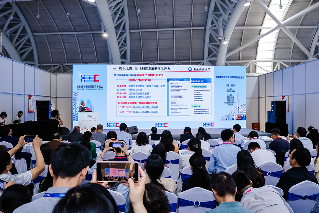 16日,代斌作题为《基于国家战略视角下兵团高校支撑区域新质生产力发展的思考》报告。丁梧秀作题为《应用型本科高校高质量发展探索与实践》报告。郭喜作题为《服务两件大事 打造新质生产力——基于师生共同体的教科产深度融合人才培养体系改革与实践》报告。郎利影作题为《深化产教融合 构建高质量人才培养新格局》报告。曾英作题为《地学类专业拔尖创新人才培养的成理实践》报告。刘晓武作题为《共筑人类美好家园愿景下 建筑科技人才培养的探索与实践》报告。陈弘作题为《审时度势推动大学教育高质量发展——创新型人才与新质生产力》报告。王川作题为《文旅数智制造创新示范基地建设探索与实践》报告。徐建俊作题为《产教融合高质量发展的思考与实践——建设职业教育新体系,打造产教融合新平台》报告。林刚作题为《文化传承 数字赋能 现代文旅高素质人才培养的守正与创新——以扬州新“三把刀”工匠人才培养为例》报告。张学理作题为《发展新质生产力,高质量培养创新人才--粤港澳大湾区拔尖创新人才培养的路径探索与实践》报告。杨保成作题为《变革赋能创新:应用型高校高质量发展的探索与实践》报告。天津市大学软件学院党委副书记、副院长张建勇作题为《深化产教融合 培育新质生产力——推动高校服务区域新动能引育的天软实践》报告。北京林业大学教务处处长徐迎寿作题为《加快专业结构优化调整 提升对高质量发展的支撑力贡献力》报告。广州医科大学教务处处长郑建民作题为《自主培养拔尖创新人才 践行一流大学使命担当》报告。