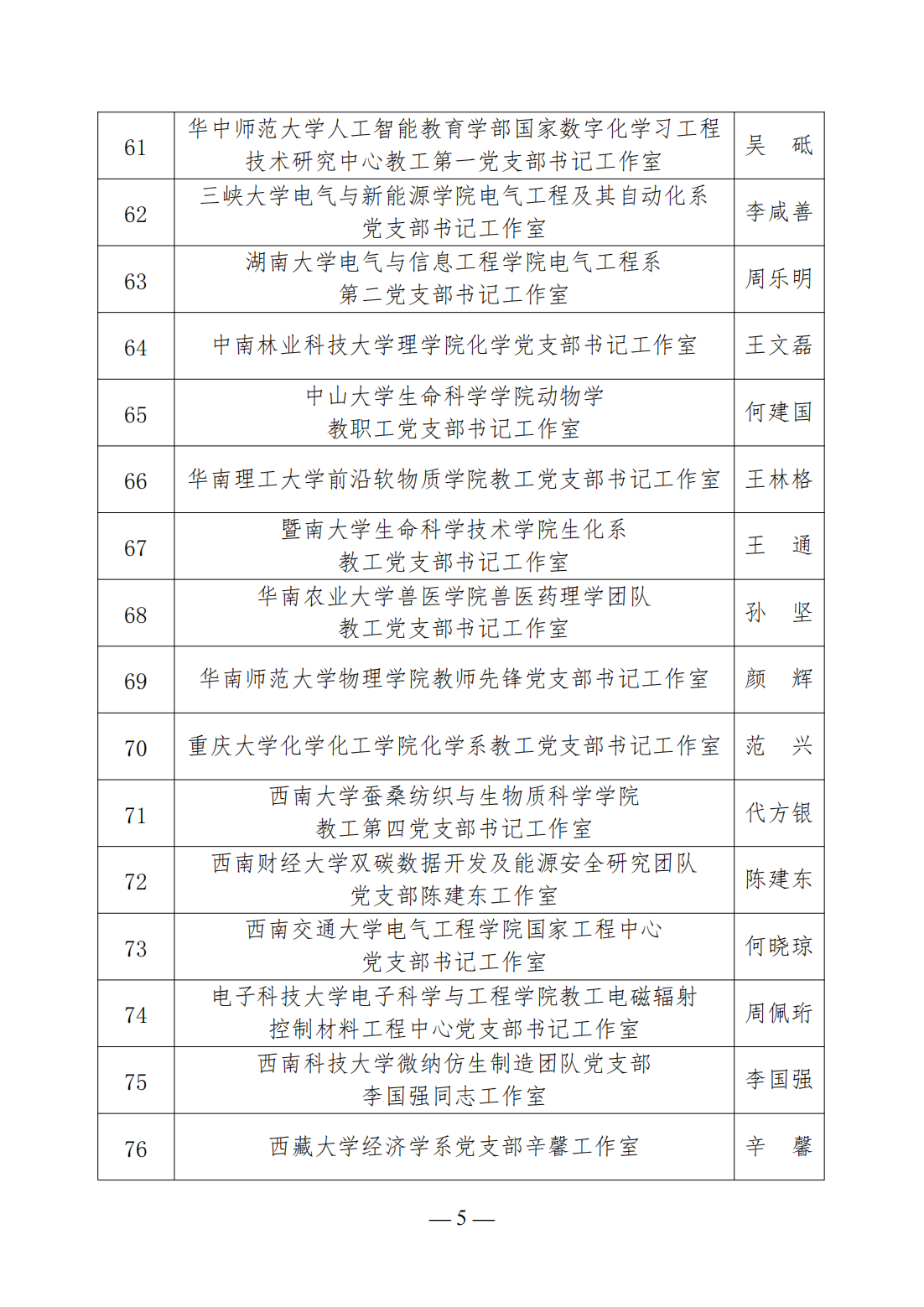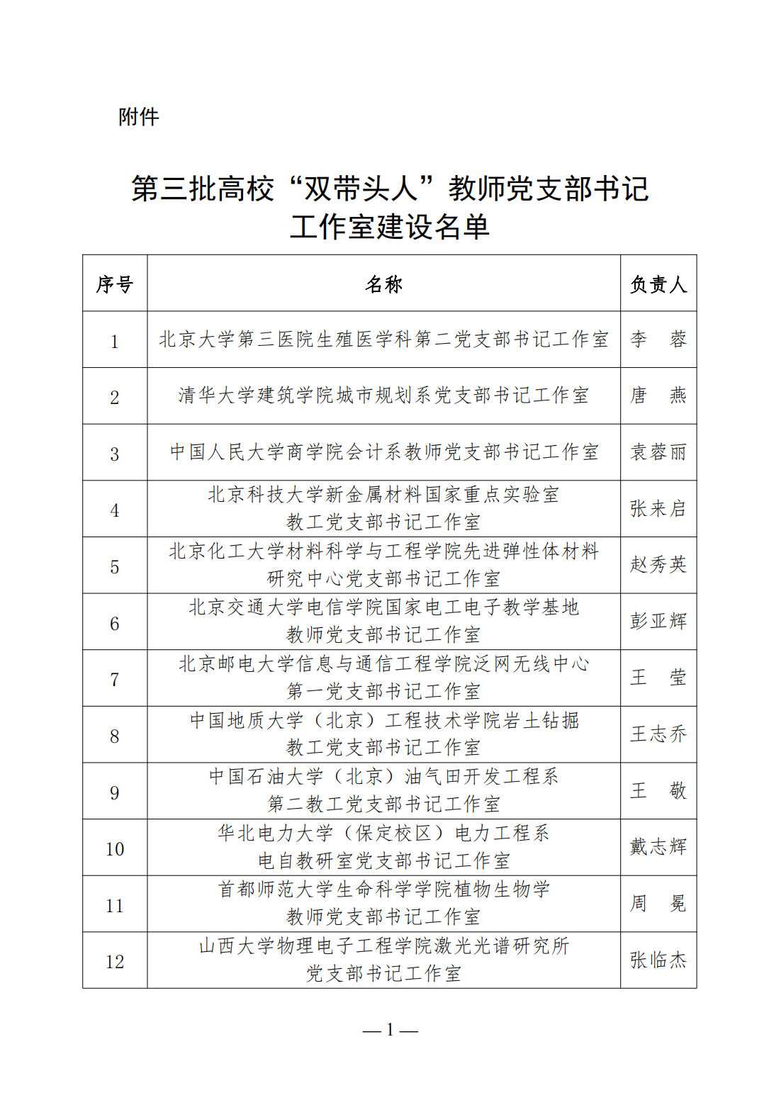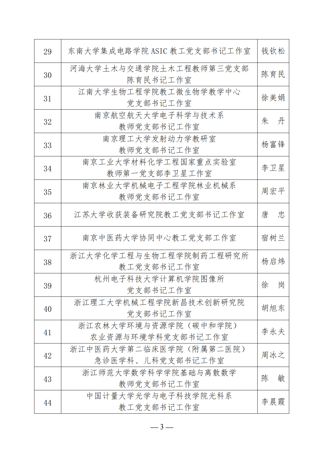 第三批高校“双带头人”教师党支部书记工作室建设名单