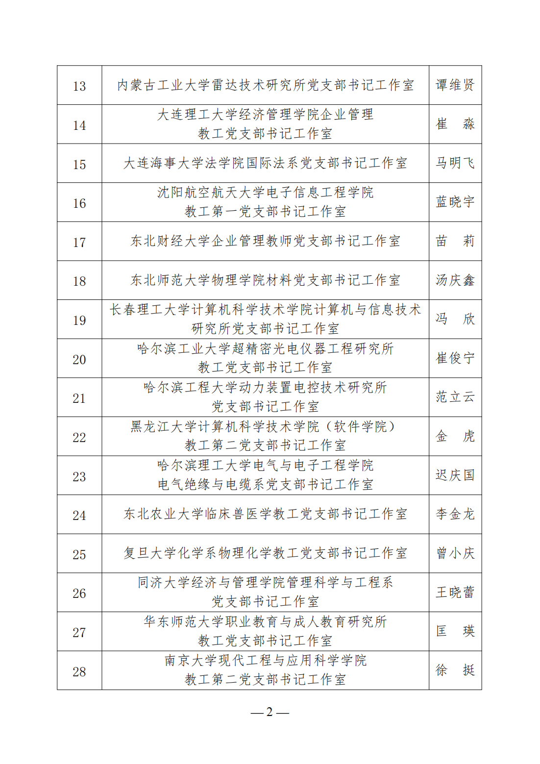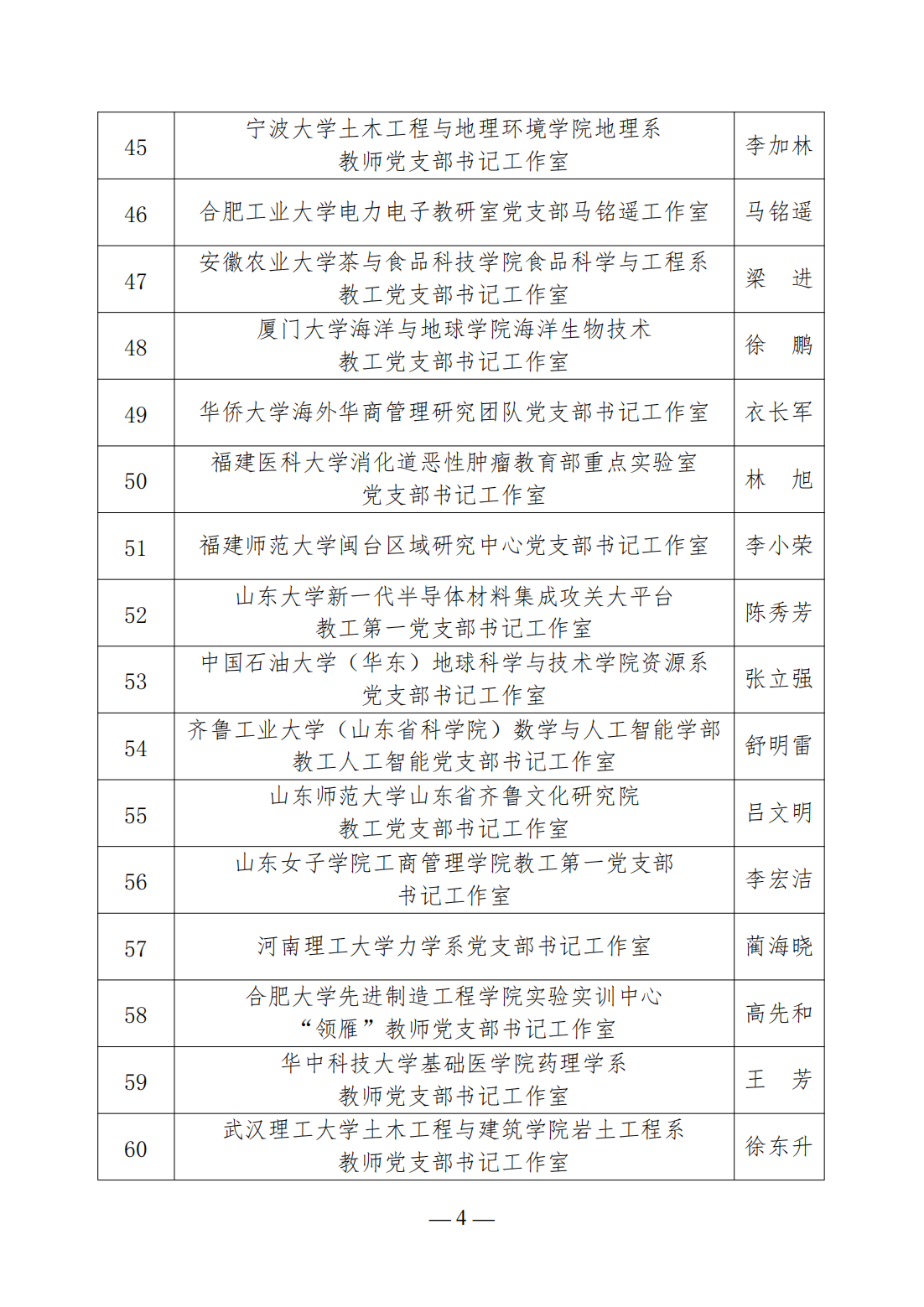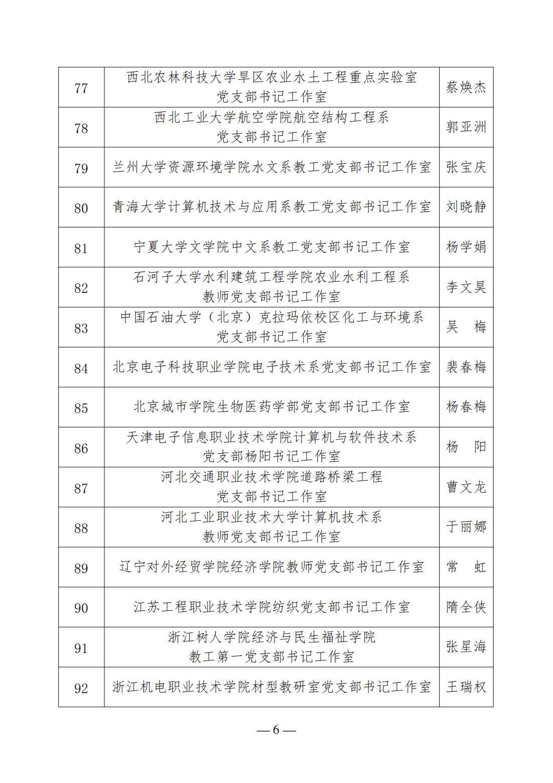 第三批高校“双带头人”教师党支部书记工作室建设名单