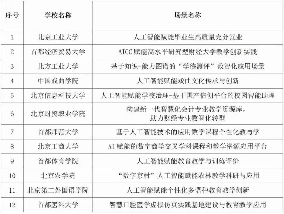 为加快人工智能在高等教育领域的创新示范应用,构建人工智能与高等教育融合发展新生态,经过高校自主申报、专家评审论证,北京市教委遴选出首批12个高等教育人工智能典型应用场景——