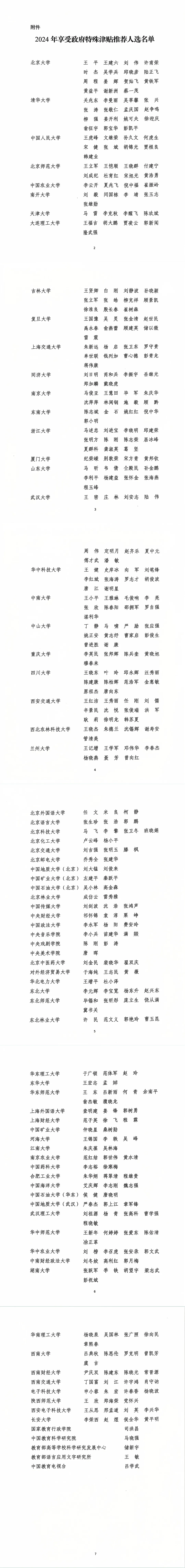 教育部2024年享受政府特殊津贴推荐人选名单