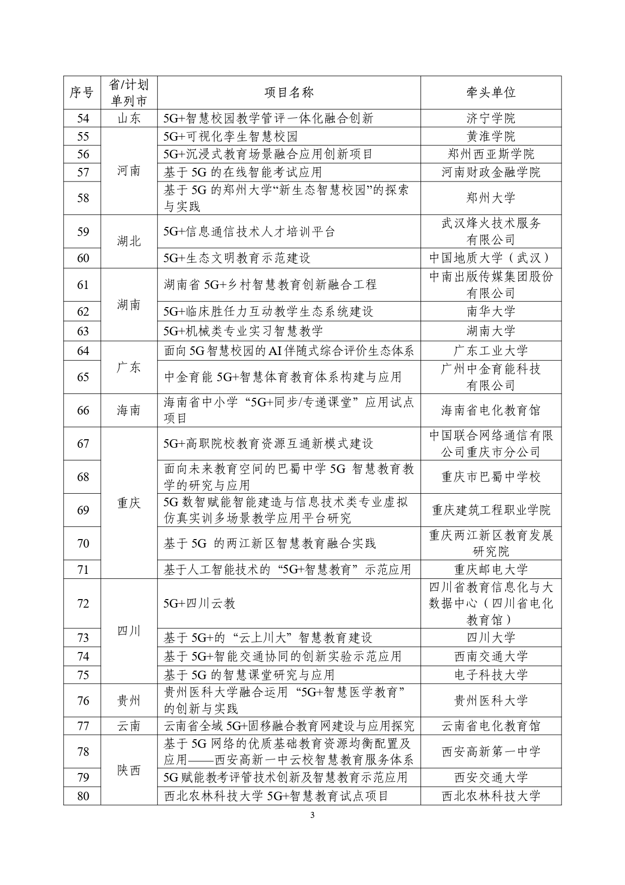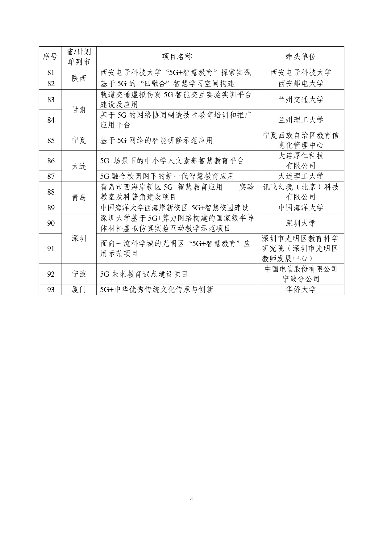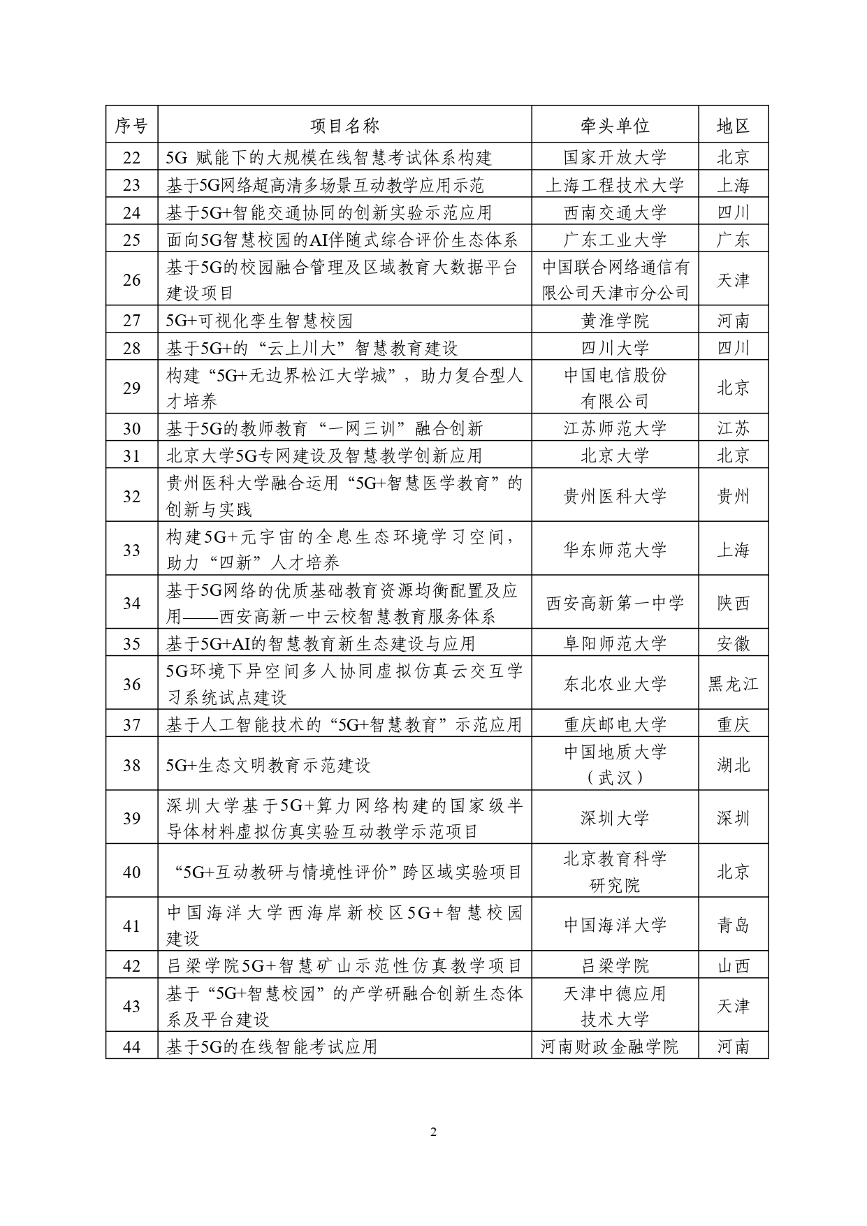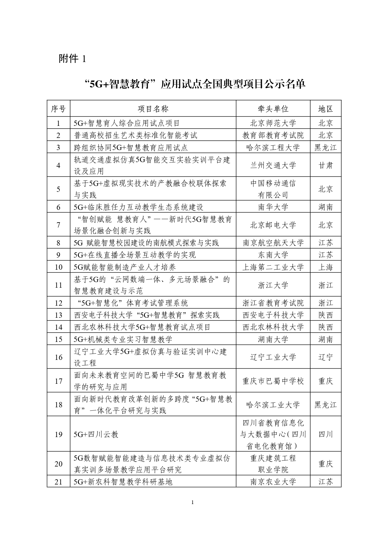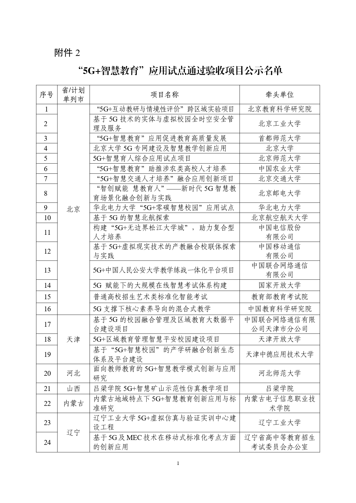 “5g 智慧教育”应用试点全国典型项目和通过验收项目名单公示