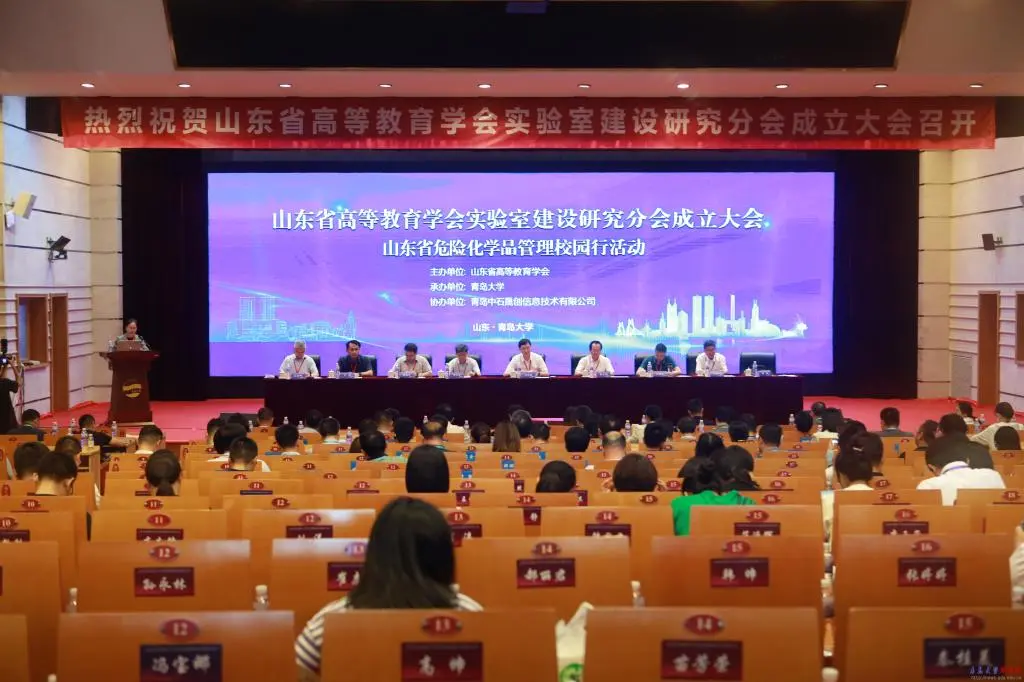 7月5日-7日,由山东省高等教育学会主办、青岛大学承办的山东省高等教育学会实验室建设研究分会成立大会暨山东省危险化学品管理校园行活动成功举办。中国高等教育学会副秘书长吴英策,山东省教育厅二级巡视员李文生,山东省高等教育学会会长、山东科技大学党委书记罗公利,中国高等教育学会实验室管理工作分会副秘书长、北京大学实验室与装备管理部副部长周勇义,浙江大学实验室与设备管理处原处长、中国仪器仪表行业协会实验室建设与安全分会理事长冯建跃,山东省高等教育学会副秘书长、山东科技大学发展规划处处长王志岗,山东省公安厅禁毒总队副总队长王炎等领导及专家代表参加大会,校党委常委、副校长何燕出席大会并致辞。