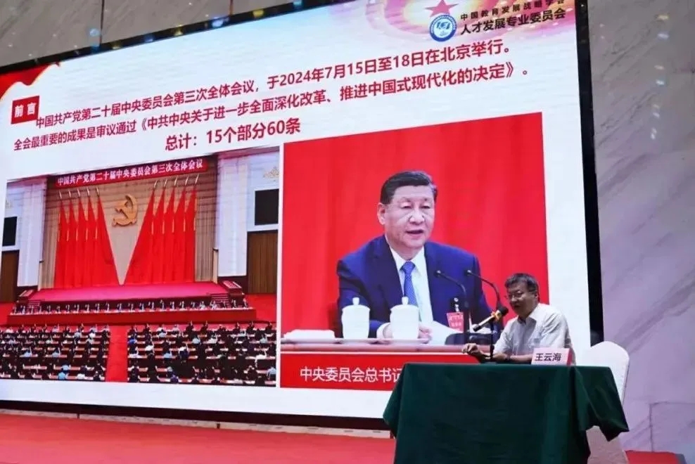 本次研修班首先由王云海副主任带领全体学员学习党的二十届三中全会精神。王云海副主任指出,《中共中央关于进一步全面深化改革、推进中国式现代化的决定》提出了教育、科技、人才是中国式现代化的基础性、战略性支撑,必须深入实施科教兴国战略、人才强国战略、创新驱动发展战略,统筹推进教育科技人才体制机制一体改革等重要论断,这些论断为新时期高校人才高质量发展指明了方向。王云海副主任表示,人才发展专委会组织本次研修班,是落实二十届三中全会精神的具体举措,旨在通过学习党和国家的最新政策,分享代表性高校的创新举措,凝聚各高校人事人才工作的共识,促进院校间的互学互鉴,共同推进教师队伍的高质量发展。