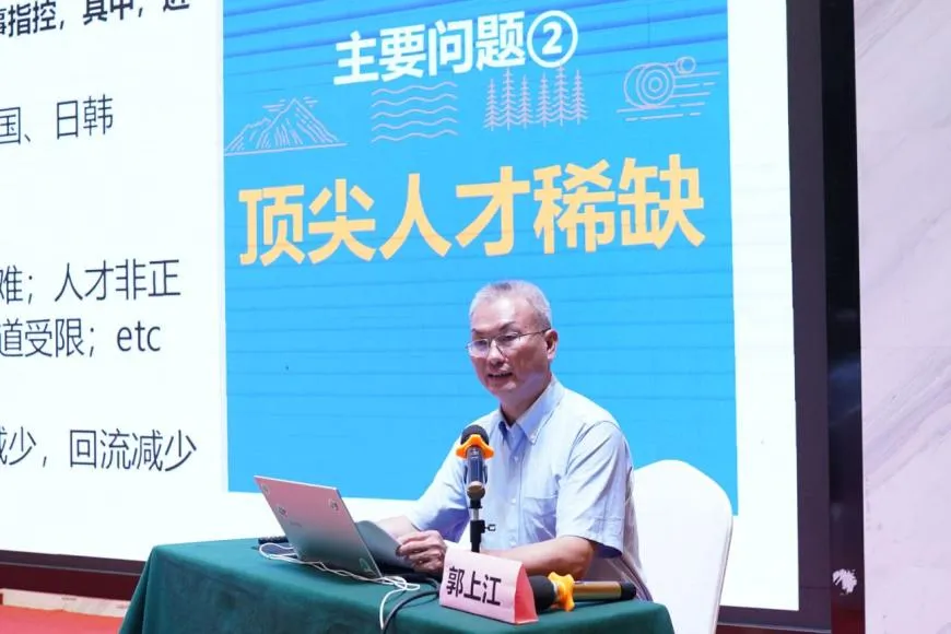 郭上江部长围绕“高校高层次人才队伍建设的主要问题和解决思路”主题展开授课。他提到,我国已经进入了全面建设社会主义现代化国家、向第二个百年奋斗目标进军的新征程,服务国家战略是高等教育承担的时代使命。然而,当前高校人才队伍建设仍然存在着事业编制不足、顶尖人才稀缺、科教融合不足、教育评价维度较单一等问题。对此,他结合中国地质大学(武汉)的实践经验给出了相应的应对措施,其中在人事人才体制方面,高校应以人才引领发展的理念建设高校教师队伍,加快人事人才改革与服务,采用准聘与长聘相结合的用人机制,为人才发展提供更多空间和保障。