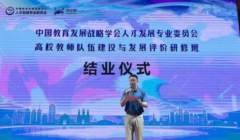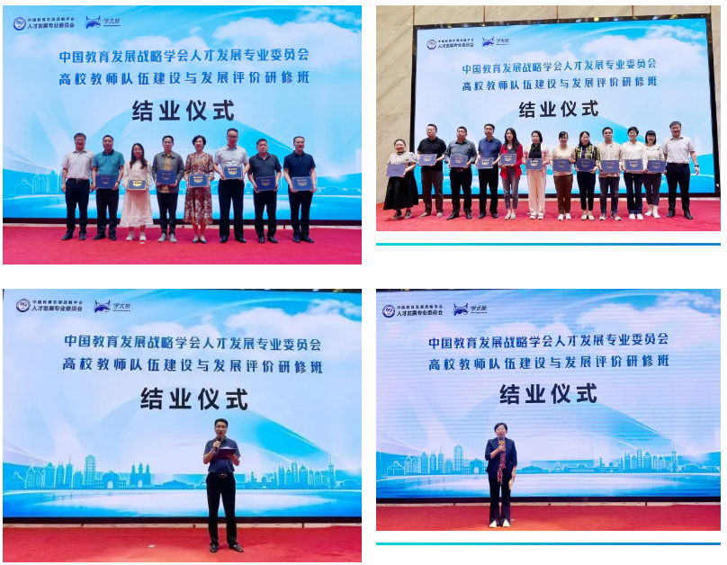 人才发展专委会学术委员会秘书秦冠英主持研修班结业仪式,王云海副主任对本次研修班进行简要总结;南宁师范大学人事处赵慧琴处长与长安大学人才办高炜副主任分别分享了参与本次研修班的收获;王云海副主任为各学校与会代表颁发结业证书。在愉快的氛围中,人才发展专委会第一期高校教师队伍建设与发展评价研修班落下帷幕。