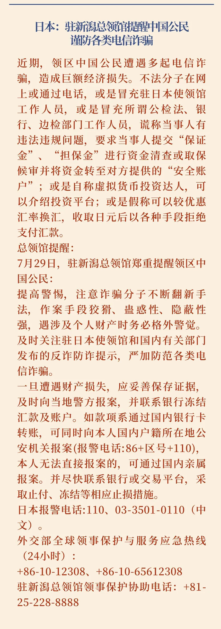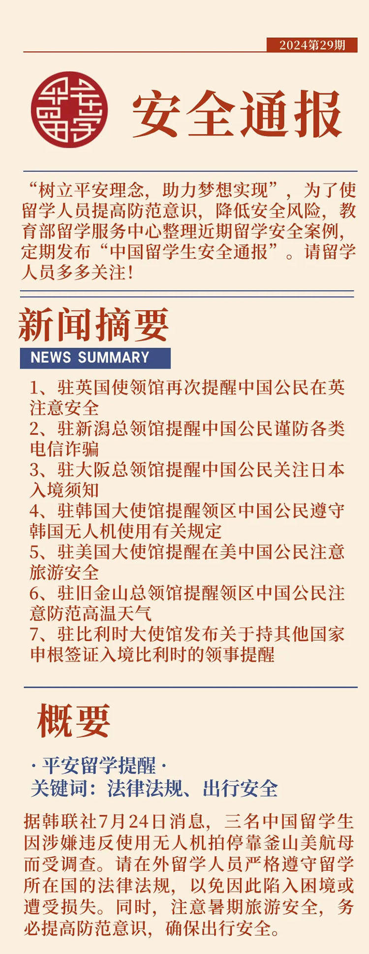 2024第29期中国留学生安全通报