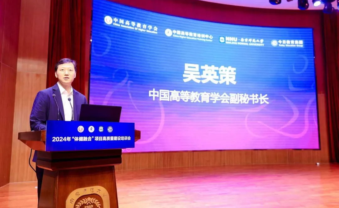 8月19日至21日,中国高等教育学会2024年“体健融合”项目高质量建设培训会在南京召开。中国高等教育学会副秘书长吴英策,江苏省高等教育学会会长丁晓昌,上海市高等教育学会常务副会长汪歙萍,天津市高等教育学会会长宋改敏,江西省高等教育学会副会长兼秘书长肖德征,河北省高等教育学会副会长兼秘书长胡保利,广西壮族自治区高等教育学会副会长王恩界,南京航空航天大学副校长施大宁,南京师范大学副校长张连红,学会事业发展部副主任白逸仙,中国高等教育培训中心执行主任赵锋,贵州省高等教育学会秘书长向嵩,重庆市高等教育学会副秘书长刘颖,湖北省高等教育学会副秘书长邓辉,浙江省高等教育学会副秘书长梁韶晖,学会体育专业委员会副秘书长阎守扶、李建臣,今日教育集团董事长刘强,以及内蒙古自治区高等教育学会、浙江省高等教育学会、福建省高等教育学会、重庆市高等教育学会相关同志出席培训会。会议由李建臣主持。