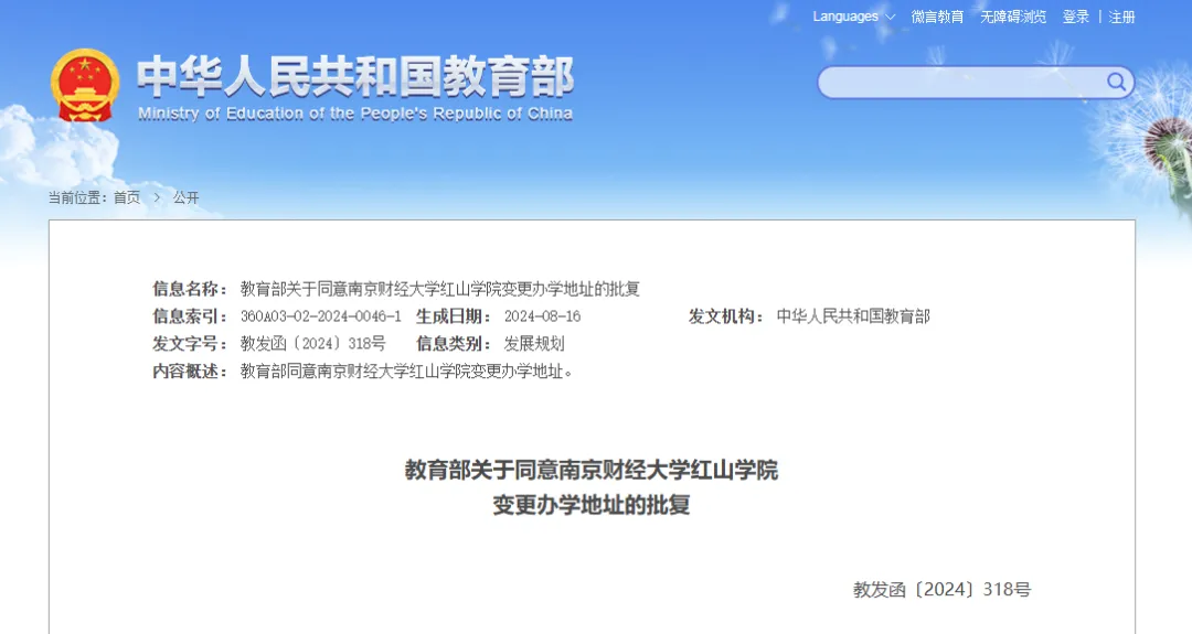 教育部同意!南京财经大学红山学院变更办学地址