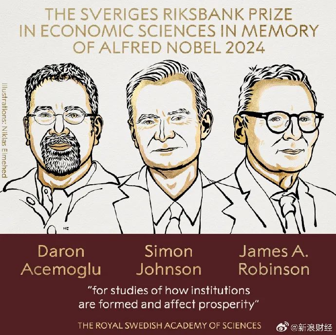 北京时间10月14日,2024年诺贝尔经济学奖揭晓获奖结果,daron acemoglu,simon johnson和james a. robinson获奖,以表彰他们关于“研究制度如何形成及其对繁荣的影响”的贡献。获奖奖金为1100万瑞典克朗(约合人民币744万元)。