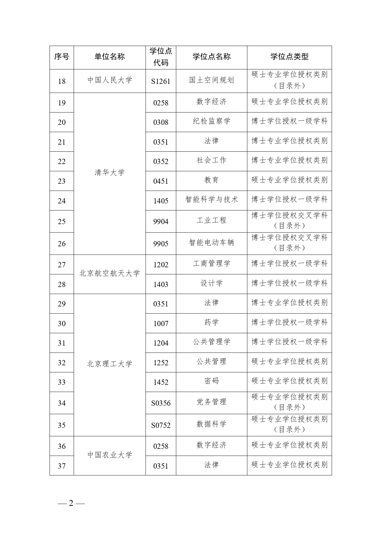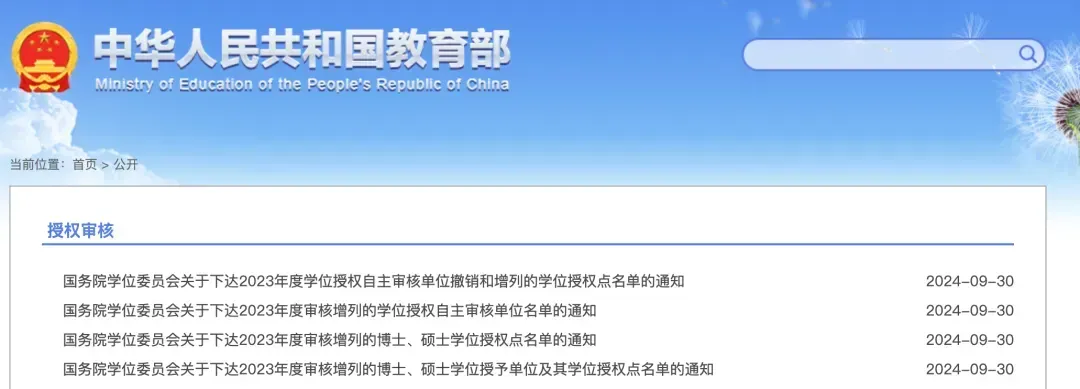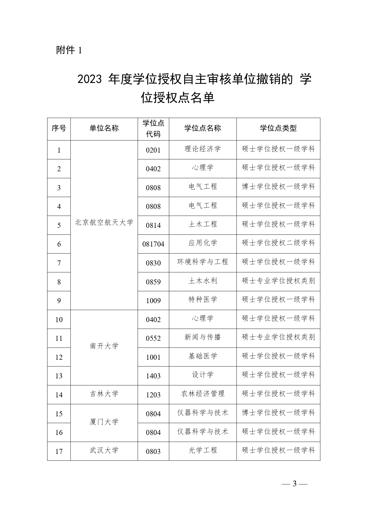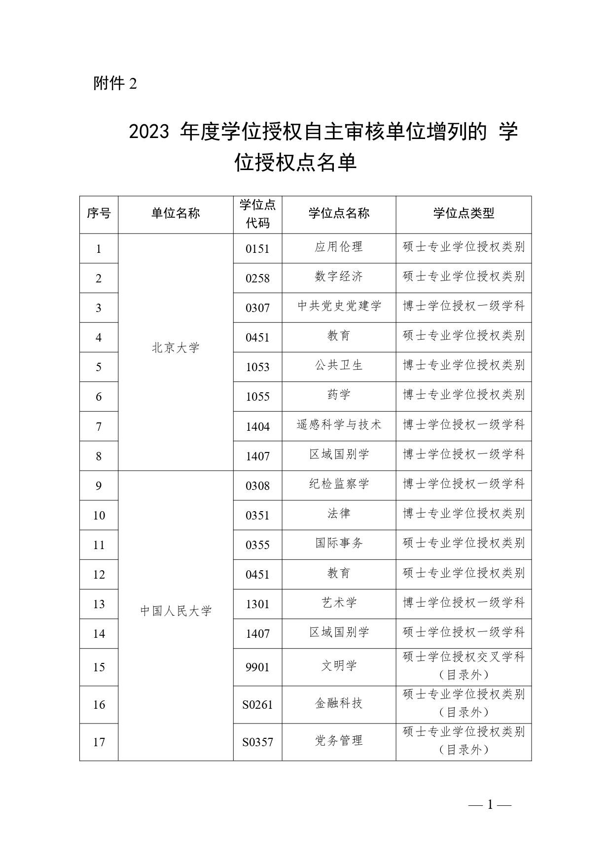 2023年度自主审核单位撤销和增列的学位授权点名单公布