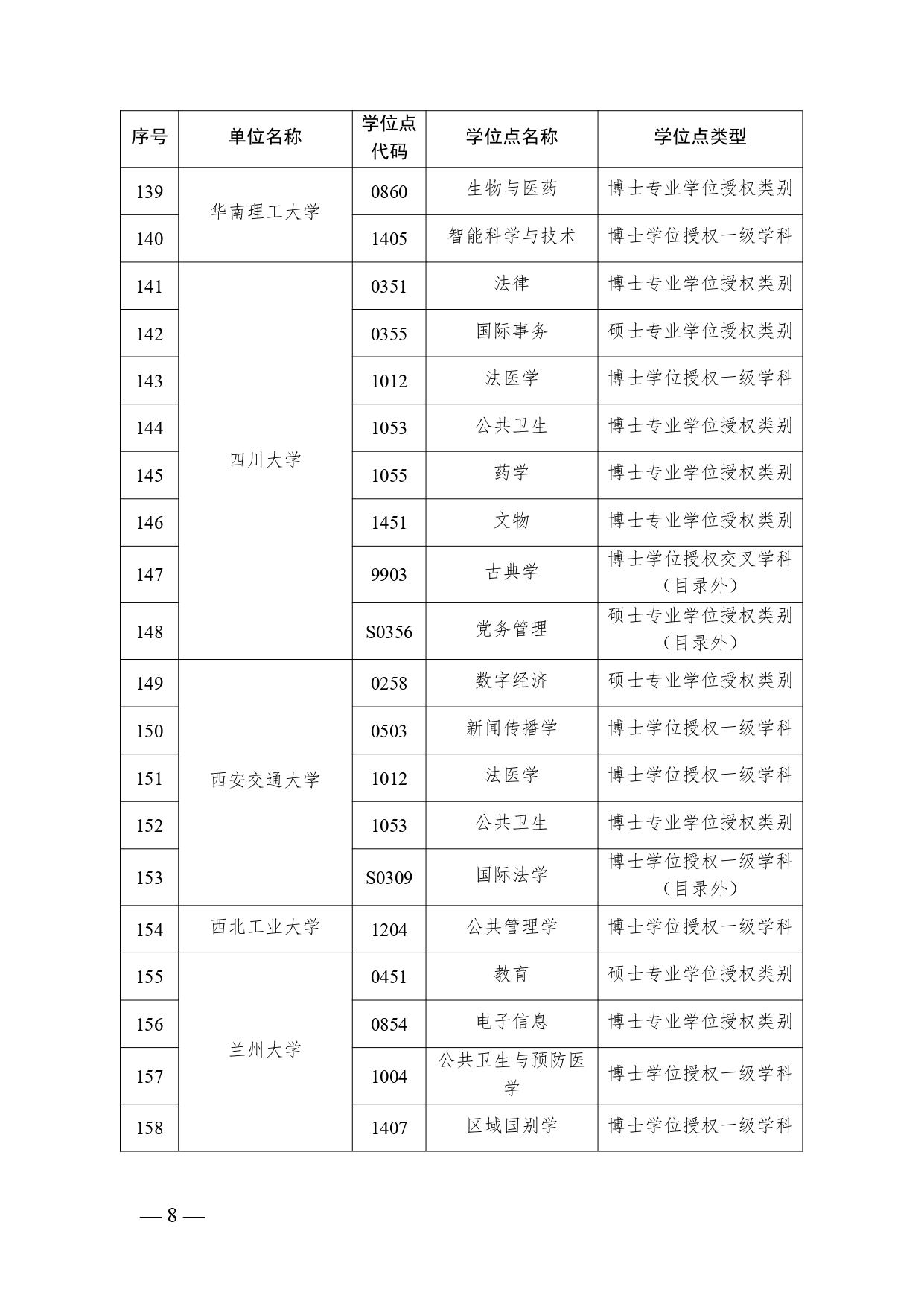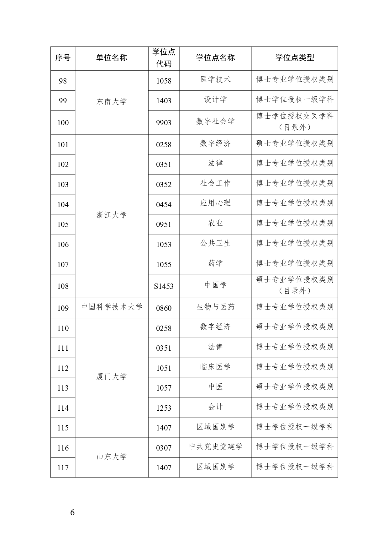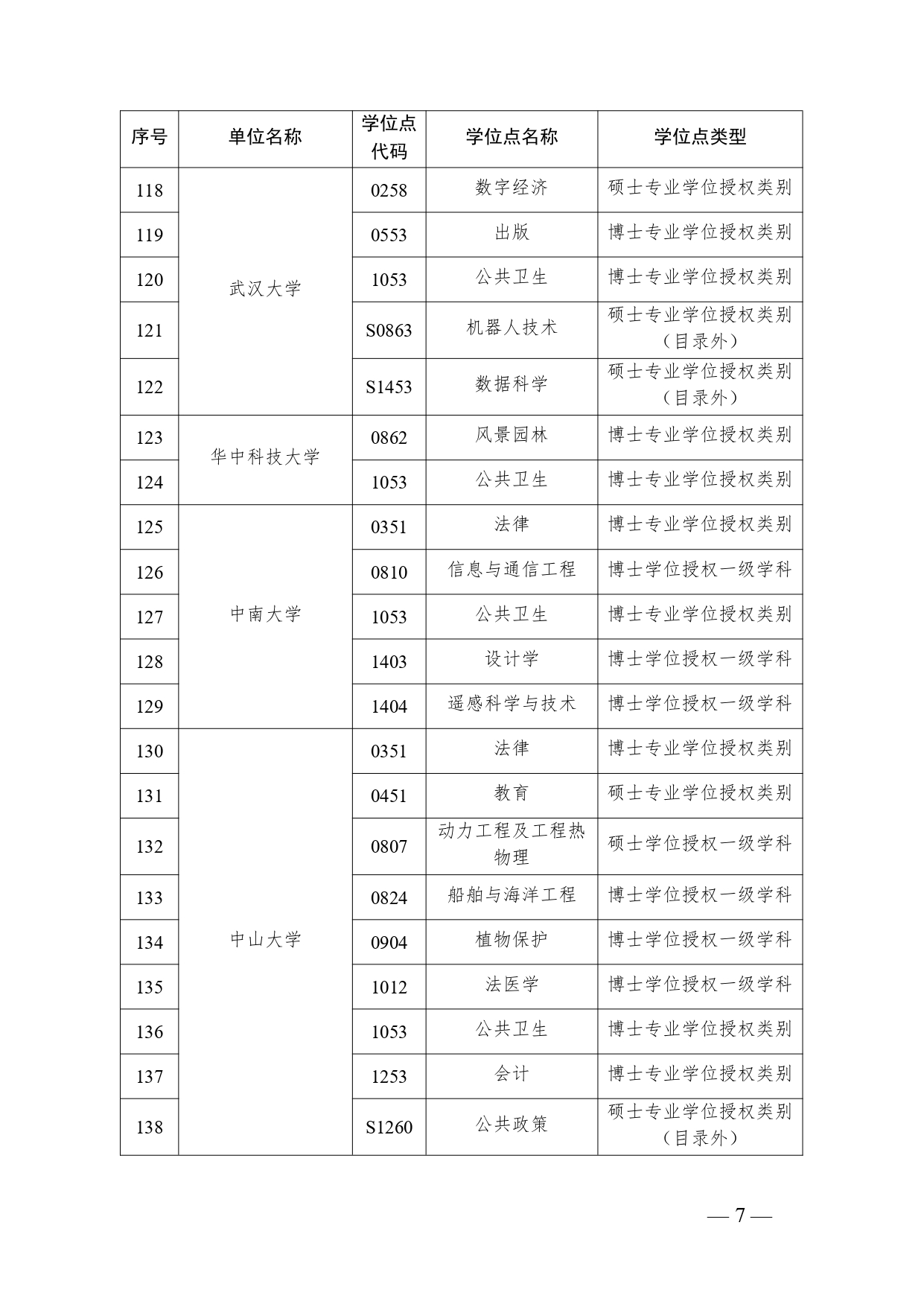 2023年度自主审核单位撤销和增列的学位授权点名单公布