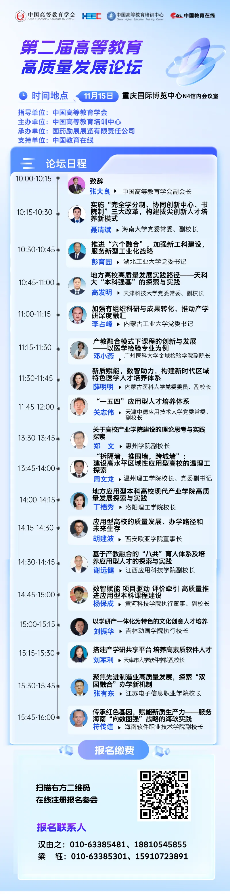 第二届高等教育高质量发展论坛将于11月15日在重庆举办