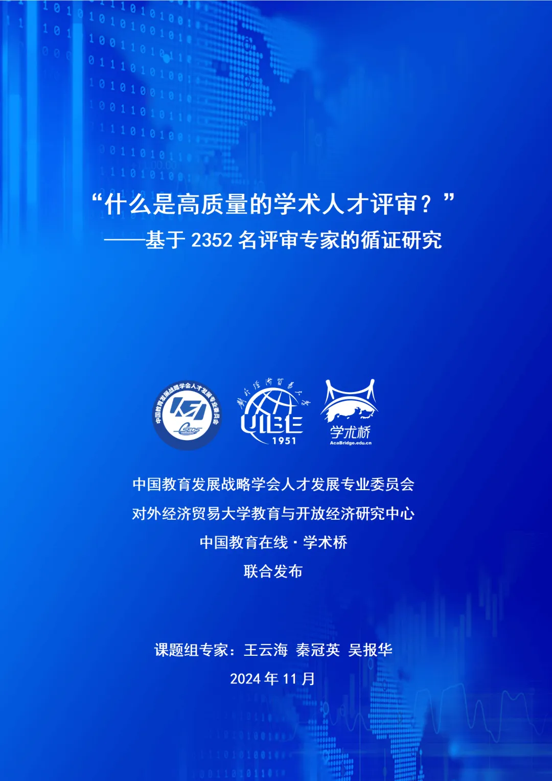 全国教育大会提出,要实施教育家精神铸魂强师行动,培养造就新时代高水平教师队伍。高水平的教师队伍建设需要高质量的人才评价机制作保障。日前,中国教育发展战略学会人才发展专业委员会、中国教育在线·学术桥以及《中国高校学术人才发展与评价追踪调查研究(cuss)》课题组联合发布了《什么是高质量的学术人才评审?——基于2352名评审专家的调查报告》,引发业内关注。报告围绕“高质量的评审专家应该具备的素养和条件”、“高质量的人才评审应该关注的维度和“学术人才发展与评价的热点问题”等方面全面了解专家的观点和建议。