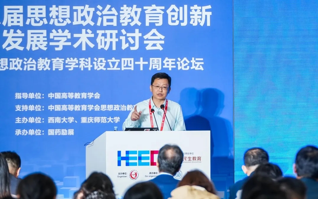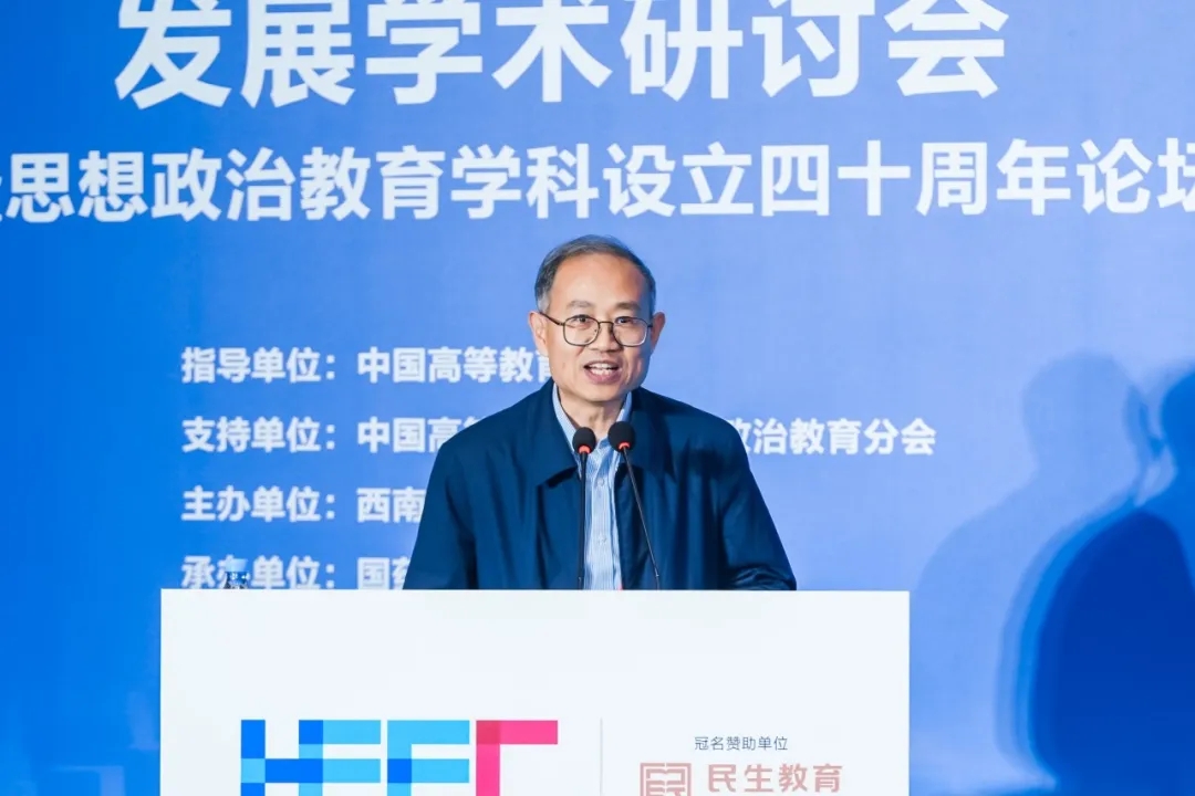 重庆师范大学原党委书记邓卓明教授以《改革开放以来党的创新理论引领思想政治教育学科发展的三重维度》为题,分享了改革开放以来党的创新理论引领思想政治教育学科发展的三重维度:一是党的创新理论为思想政治教育学科发展定位,即党的创新理论为思想政治教育学科发展提供战略定位、理论定位和使命定位;二是党的创新理论推动思想政治教育学科持续发展,即党的创新理论为思想政治教育学科持续发展提供理论支撑、内容资源与方法指导;三是党的创新理论引领思想政治教育学科高质量发展,围绕思想政治工作生命线、人才培养质量、社会主义文化建设引领思想政治学科的高质量发展。