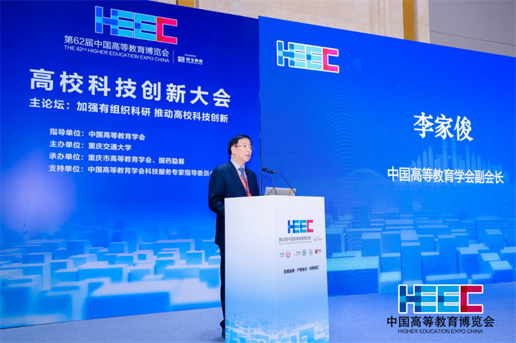 李家俊在致辞中表示,高校作为国家战略科技力量重要组成部分,应切实担负起推动科技创新的使命担当和历史责任,加强有组织科研,持续优化创新体系,加快突破关键核心技术。李家俊指出,推动高校有组织科技创新,既是顺应新一轮科技革命的必然选择,也是服务国家重大需求的战略需要,更是高校实现高质量发展的内在要求。李家俊要求,一是要明确有组织科研的战略方向,二是要完善有组织科研的创新体系,三是要加快构建与有组织科研相适应的评价机制,共同构建健康良好的科研评价体系,强化价值引领,大力弘扬科学家精神,健全科学分类评价体系,鼓励科技工作者勇攀高峰。