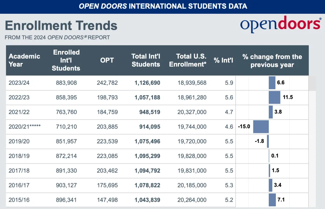 北京时间2024年11月18日晚,美国国际教育研究所(institute of international education, iie)发布了《2024年度美国国际教育门户报告》,也就是:open doors 2024 report。