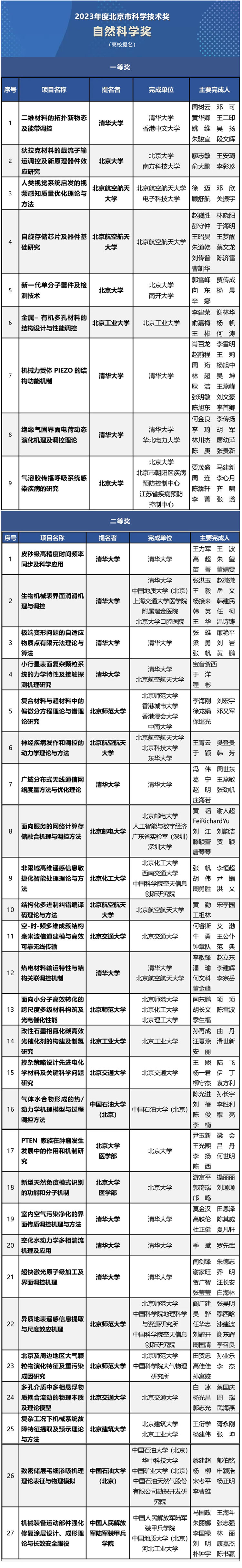 近日,2023年度北京市科学技术奖正式公布,19位科学家、196项成果获奖。其中,北京部分高校提名的多个项目成果荣获奖项,一起来看: