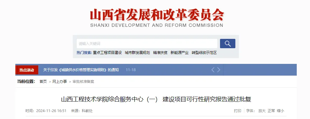 11月26日,山西省发改委批复了4所大学的新建项目,总投资超4.2亿元。